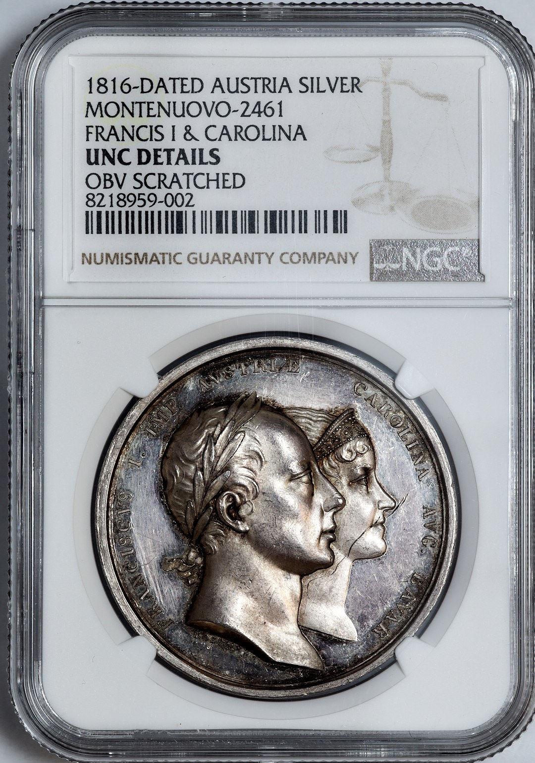 Austria, Medal Ślubny Franciszek I i Karolina Bawarska 1816