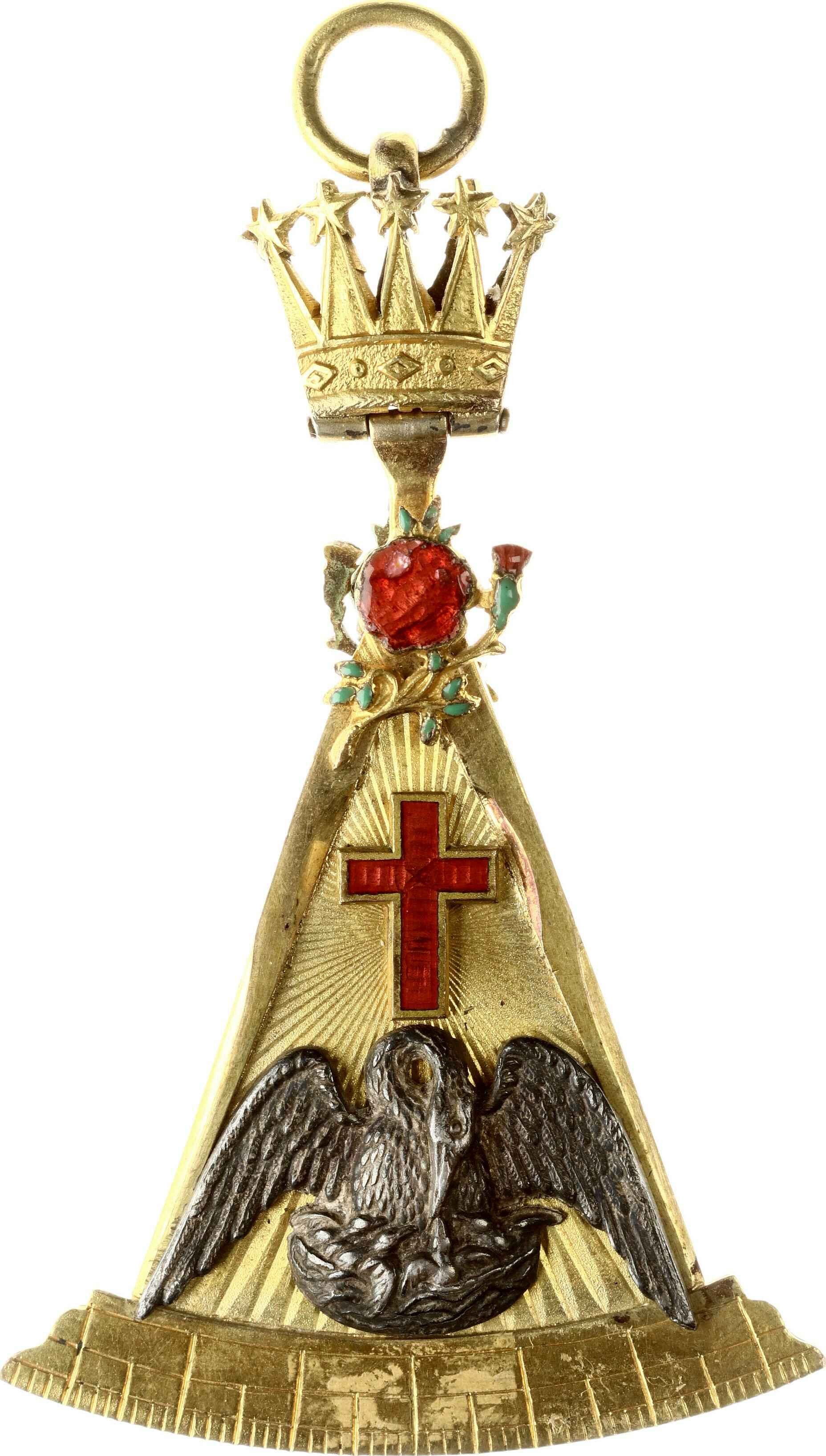 Great Britain, Scotland.Masonic ritual badge of the lodge, ND. Silvered and gilded bronze 67 x 42 mm, 19.26 g. Enamels.