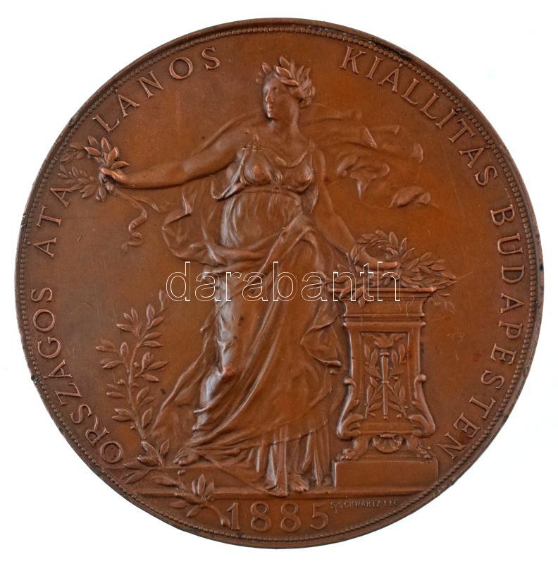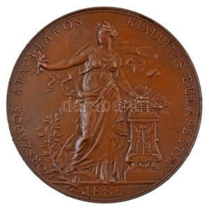 Schwartz István (1851-1924) 1885. "Országos Általános Kiállítás Budapesten 1885 / Korebecz Péternének, Szolnok-Doboka - Az érdem jeléül" bronz díjérem (65mm) T:XF patina, több kisebb ph. Hungary 1885. "Országos Általános Kiállítás Budapesten 1885 / Korebecz Péternének, Szolnok-Doboka - Az érdem jeléül (National Exposition at Budapest in 1885 / For Mrs. Peter Korebecz from Szolnok-Doboka - As the Sign of Merit)" bronze commemorative medallion. Sign.: István Schwartz (65mm) C:XF patina, multiple smaller edge errors