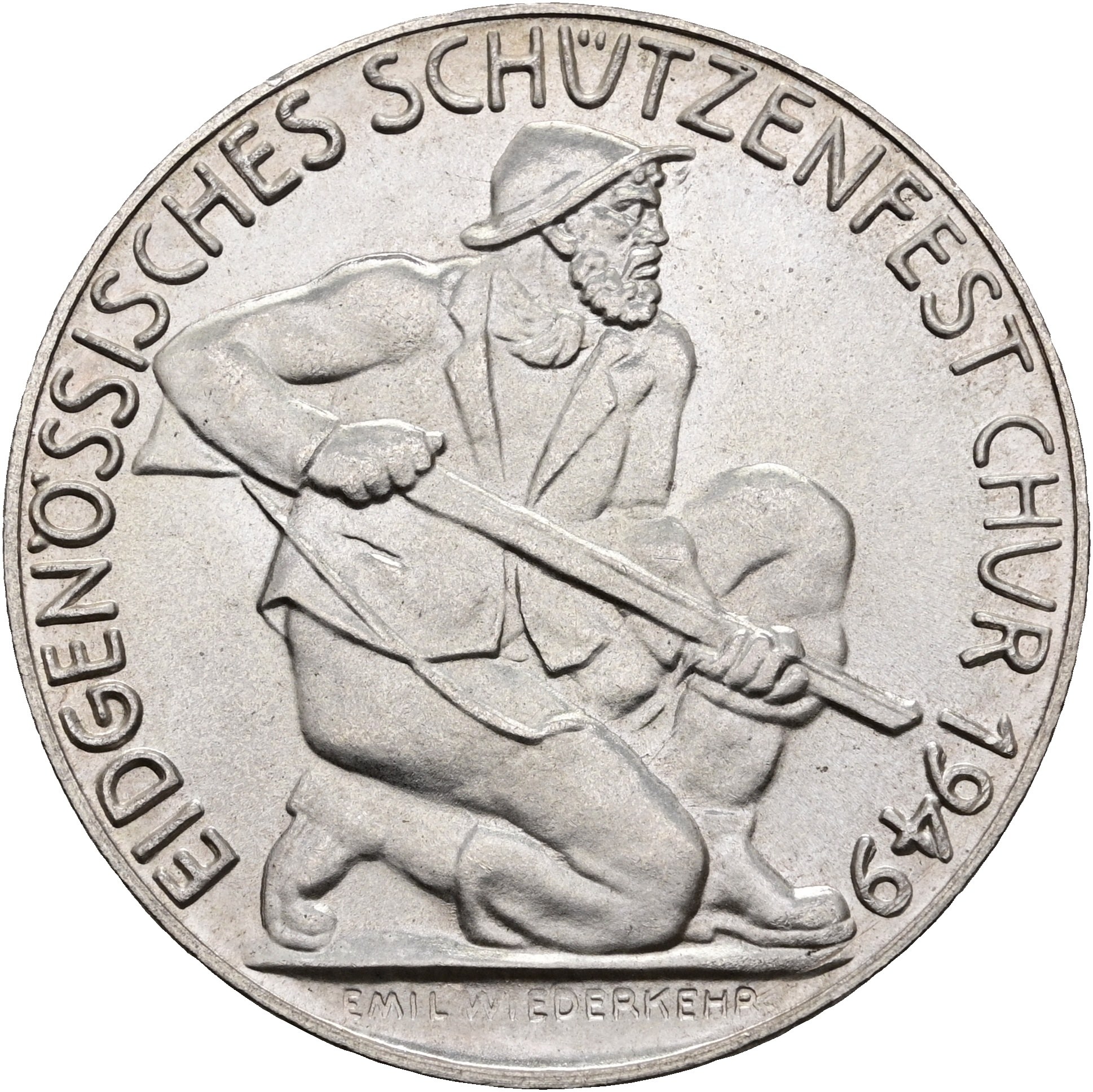 Silbermedaille auf das Eidgenössische Schützenfest in Chur 1949 (Schützenmedaillen Richter 857b)