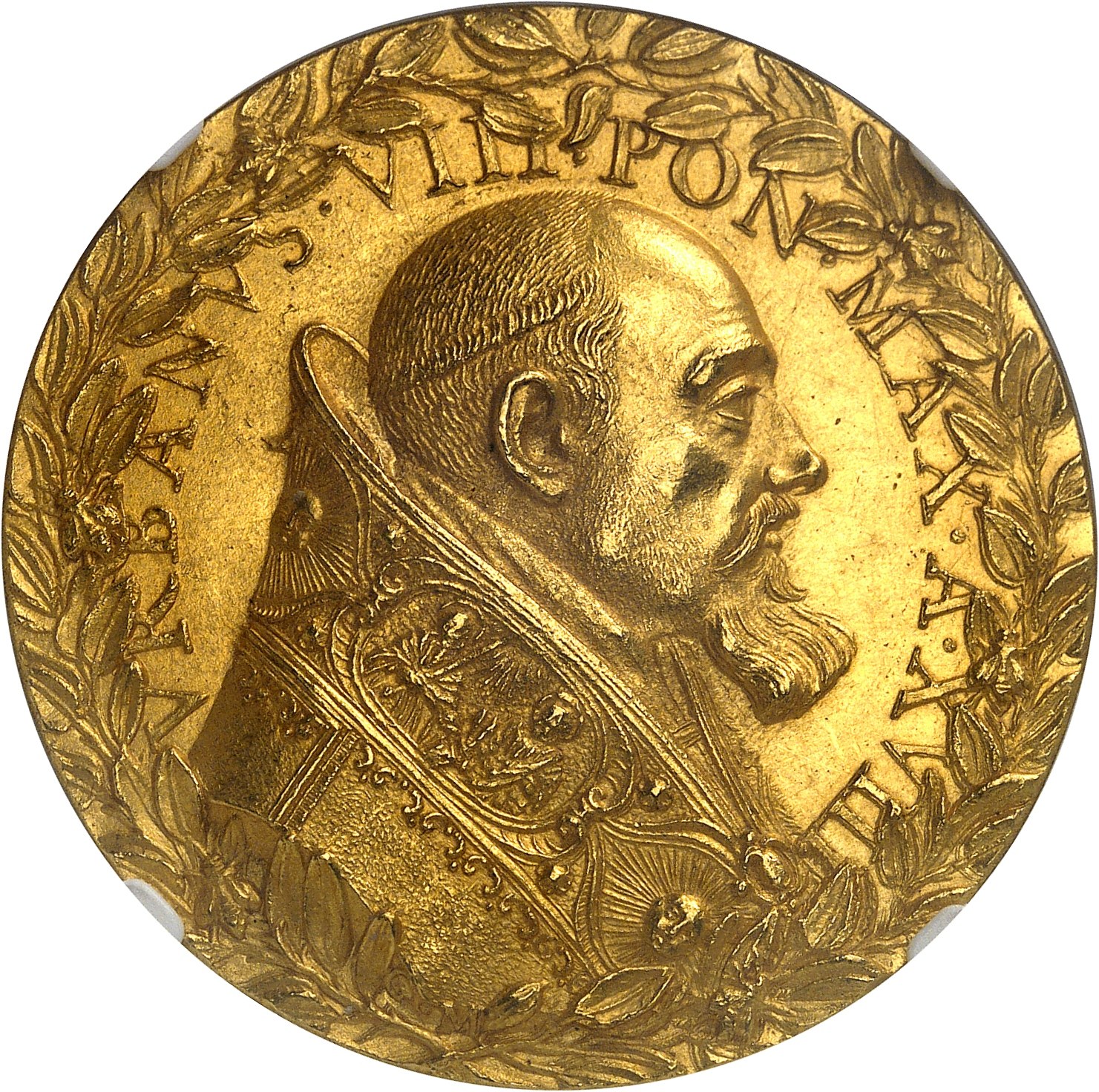 Av. VRBANVS. VIII. PON. MAX. A. (date). Dans une couronne formée de deux branches de laurier, buste à droite ; au-dessous signature.