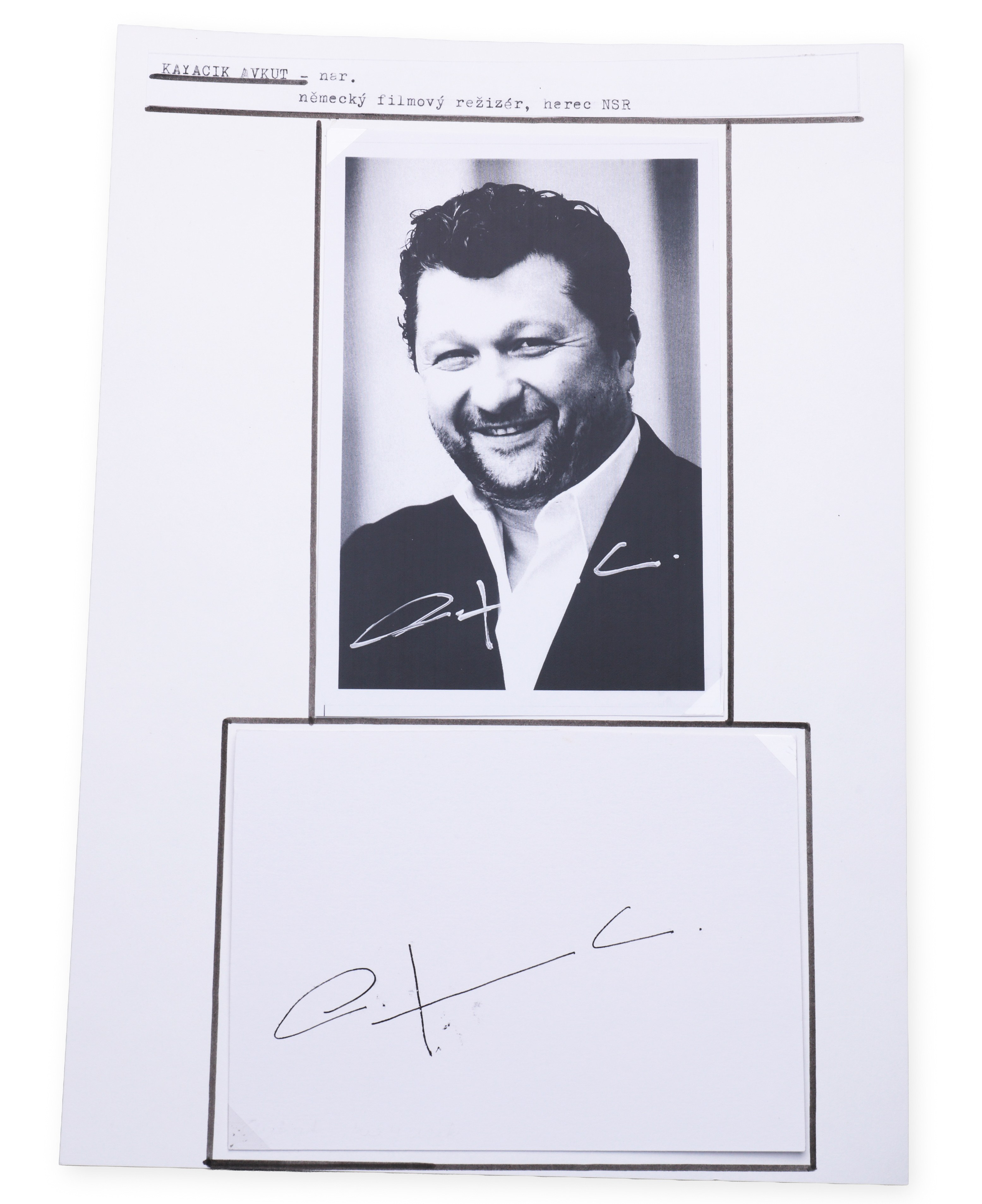 Avkut Kayacık's signature on the card and photo placed on the collector's sheet. Avkut Kayacik is a Turkish-German actor, known for his work in German television and film. His signature is an interesting collector's item associated with an actor who played a number of character roles in European film and television productions.Bidders are obliged to inform themselves about the condition of the lots before the auction, subsequent complaints will not be taken into account.