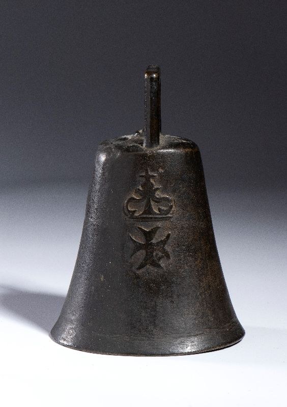 Bronze church bell for summoning the faithful, in a church or hospital chapel (likely a work of the Knights of Malta), Southern Italy. Complete with its metal clapper. Good condition.