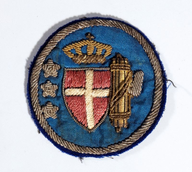 Fabric badge with silk thread embroidery, gold and silver braid, featuring the fasces and Savoy shield, with three stars for CONI (Italian National Olympic Committee) management rank. Sew-on badge on the national team's uniform or tracksuit. From the 20-year Fascist era, original, measures approximately 60 mm in diameter, in perfect condition.