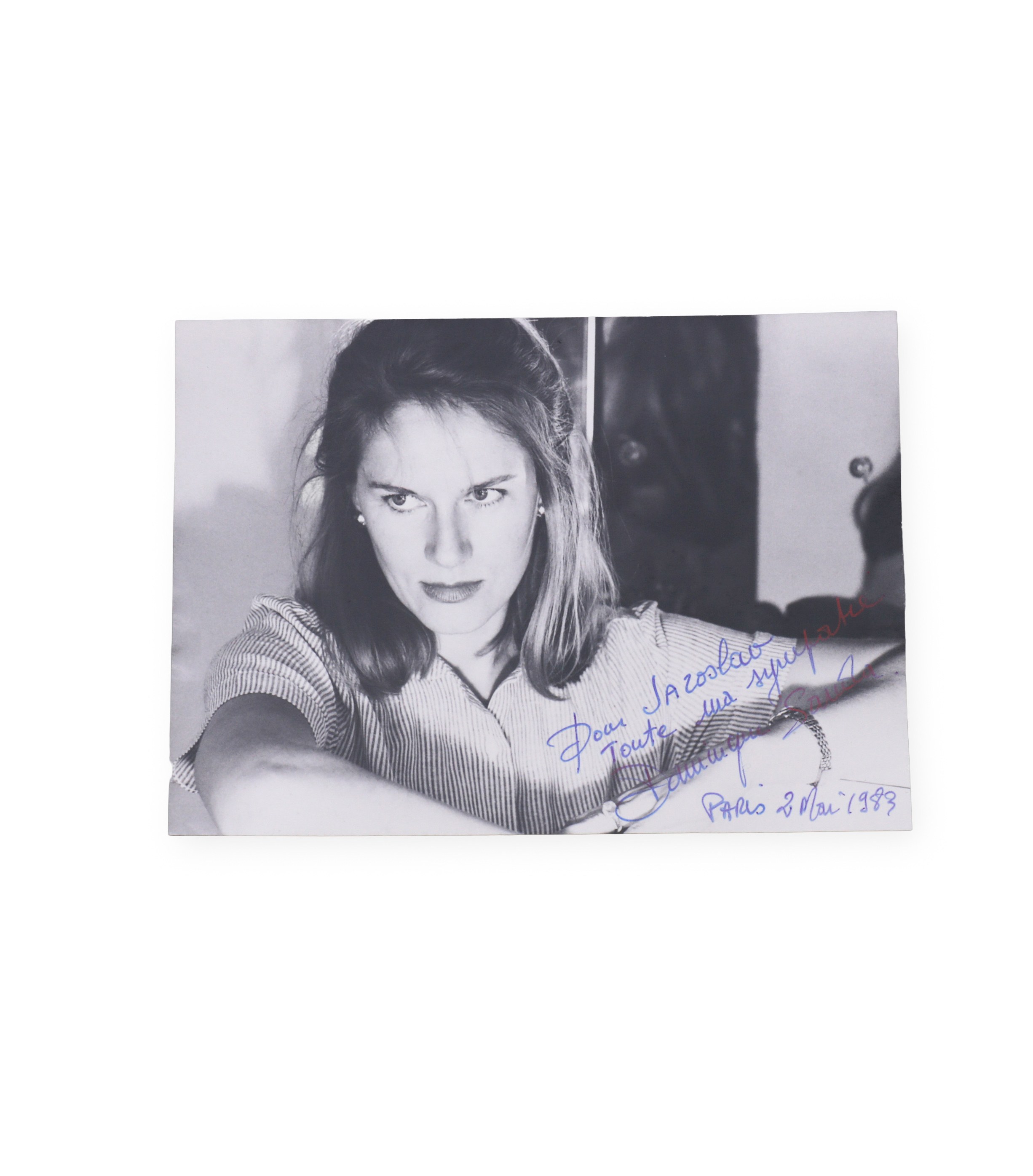 Dominique Sanda – French actress and model, winner of the Best Actress Award at the Cannes Film Festival. Signature with dedication on a photograph from 2/5/1983, a valuable document associated with her film career.___________________________________________________________________________