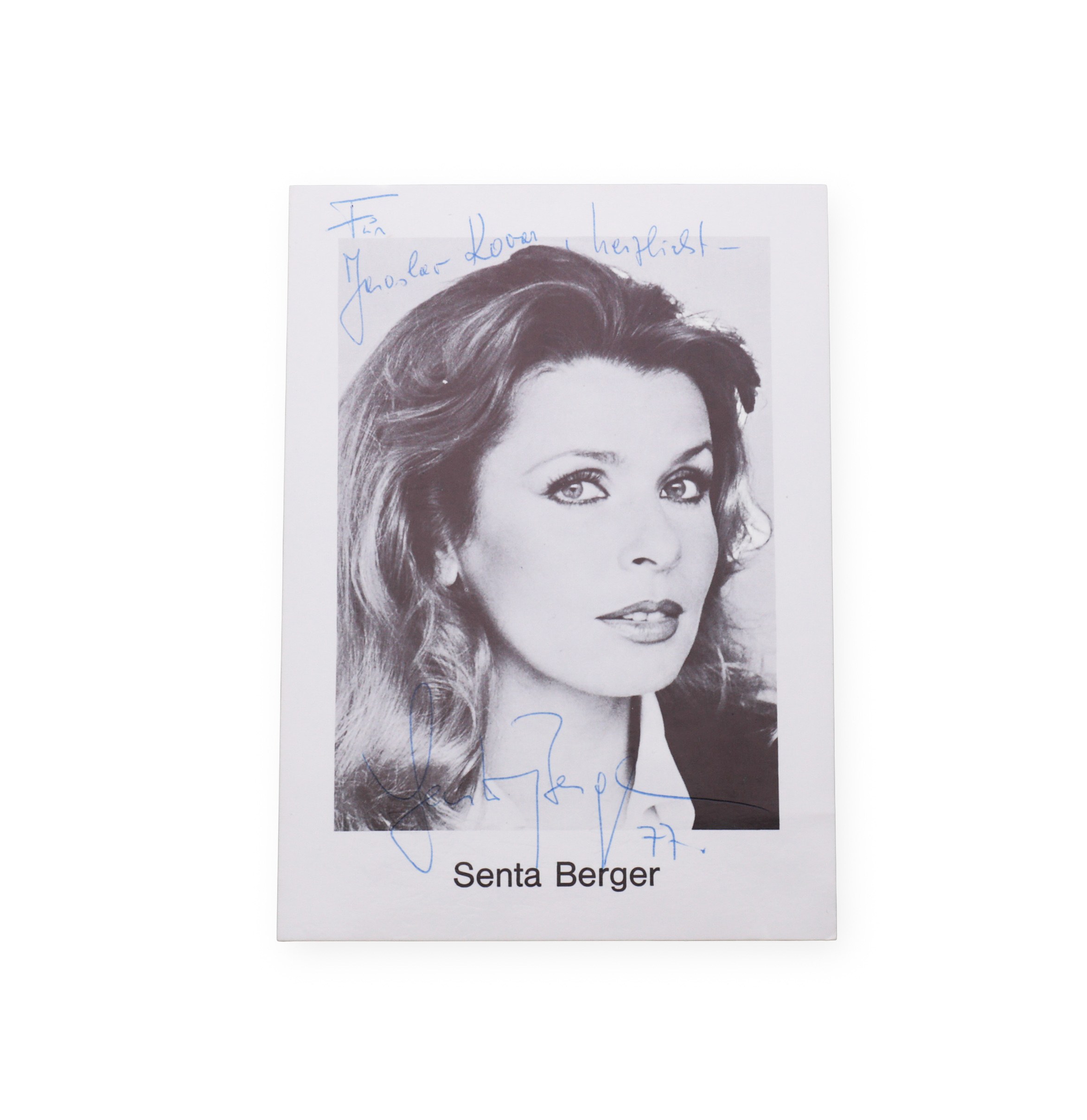 Senta Berger – Austrian actress and producer, a prominent figure in European and world cinema. Signature with dedication on a photograph from 1977, a valuable document associated with her film career.___________________________________________________________________________