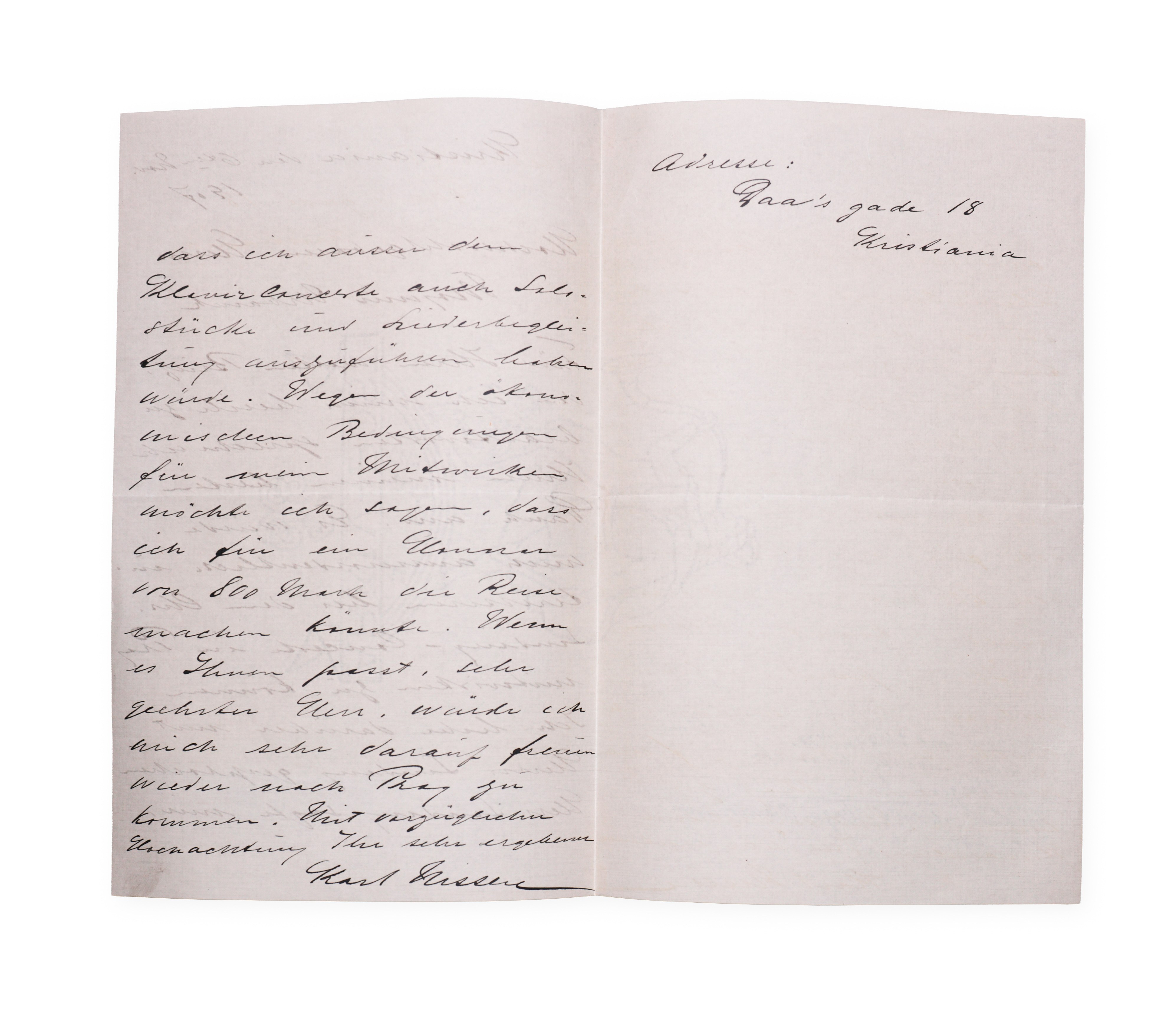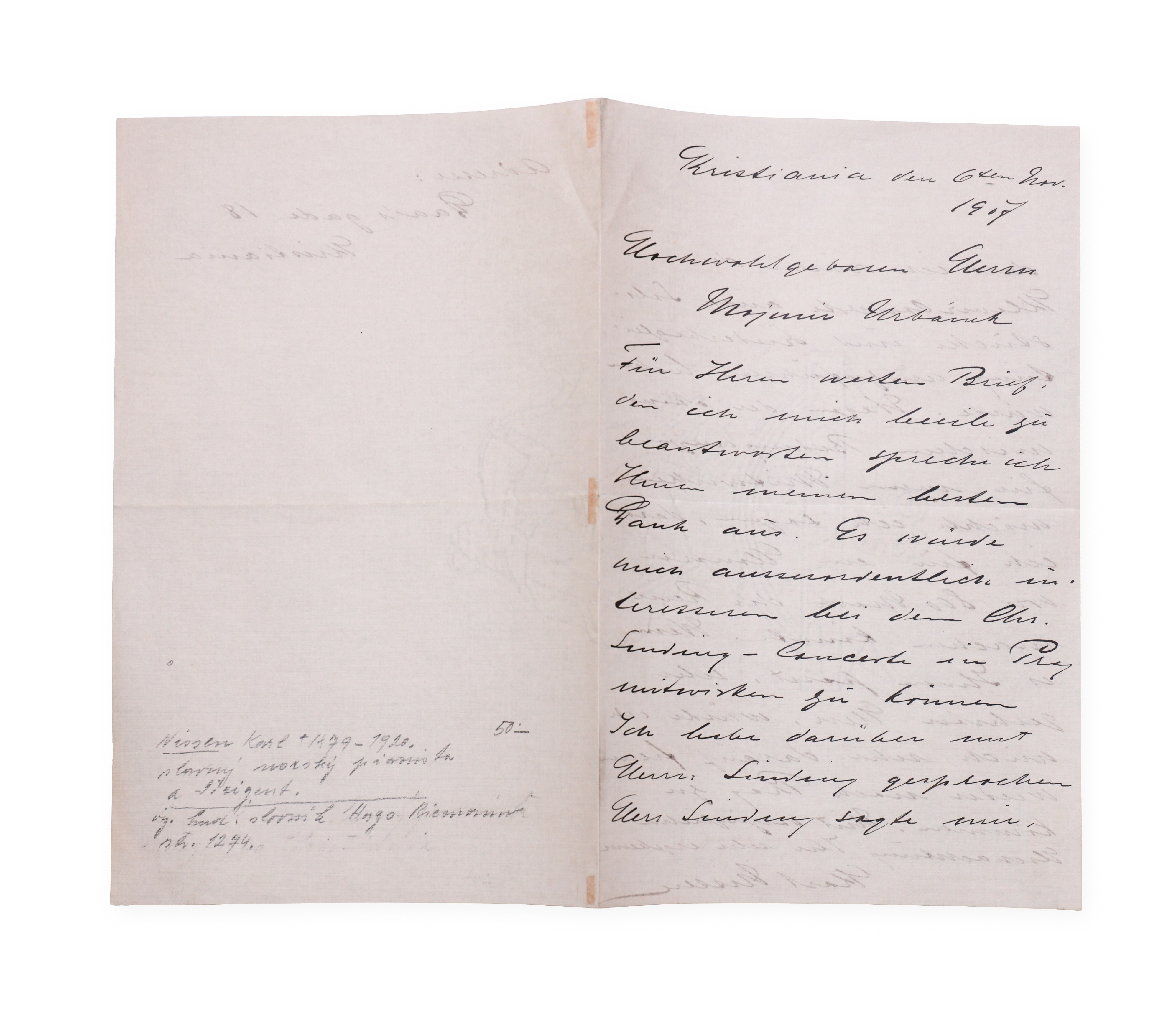 Handwritten letter to a personality with his signature in full, dated 11/6/1908. Karl Nissen was a Norwegian pianist, conductor and music teacher. He worked as a soloist and chamber musician and made a significant contribution to the development of musical life in Norway at the beginning of the 20th century.___________________________________________________________________________