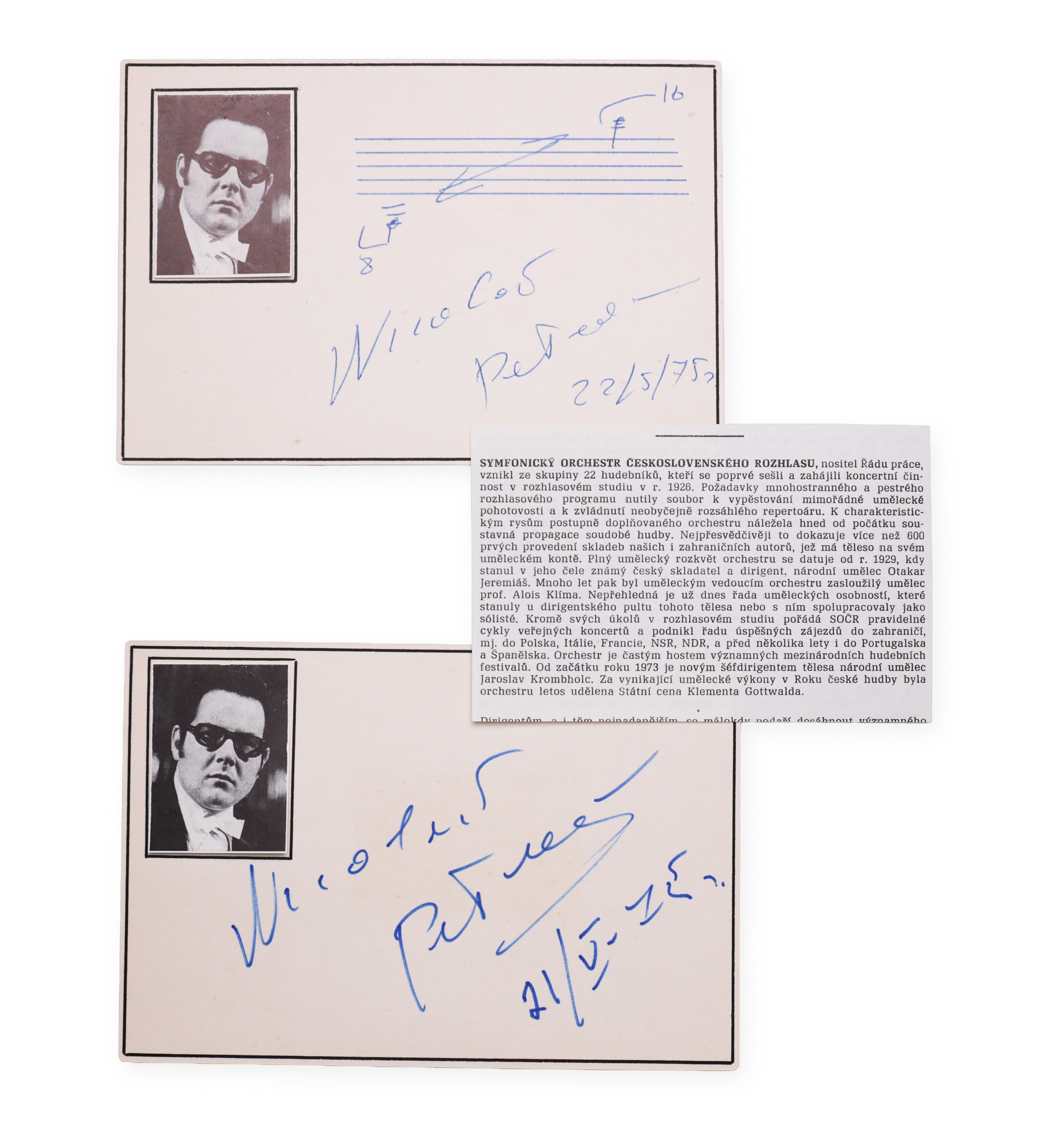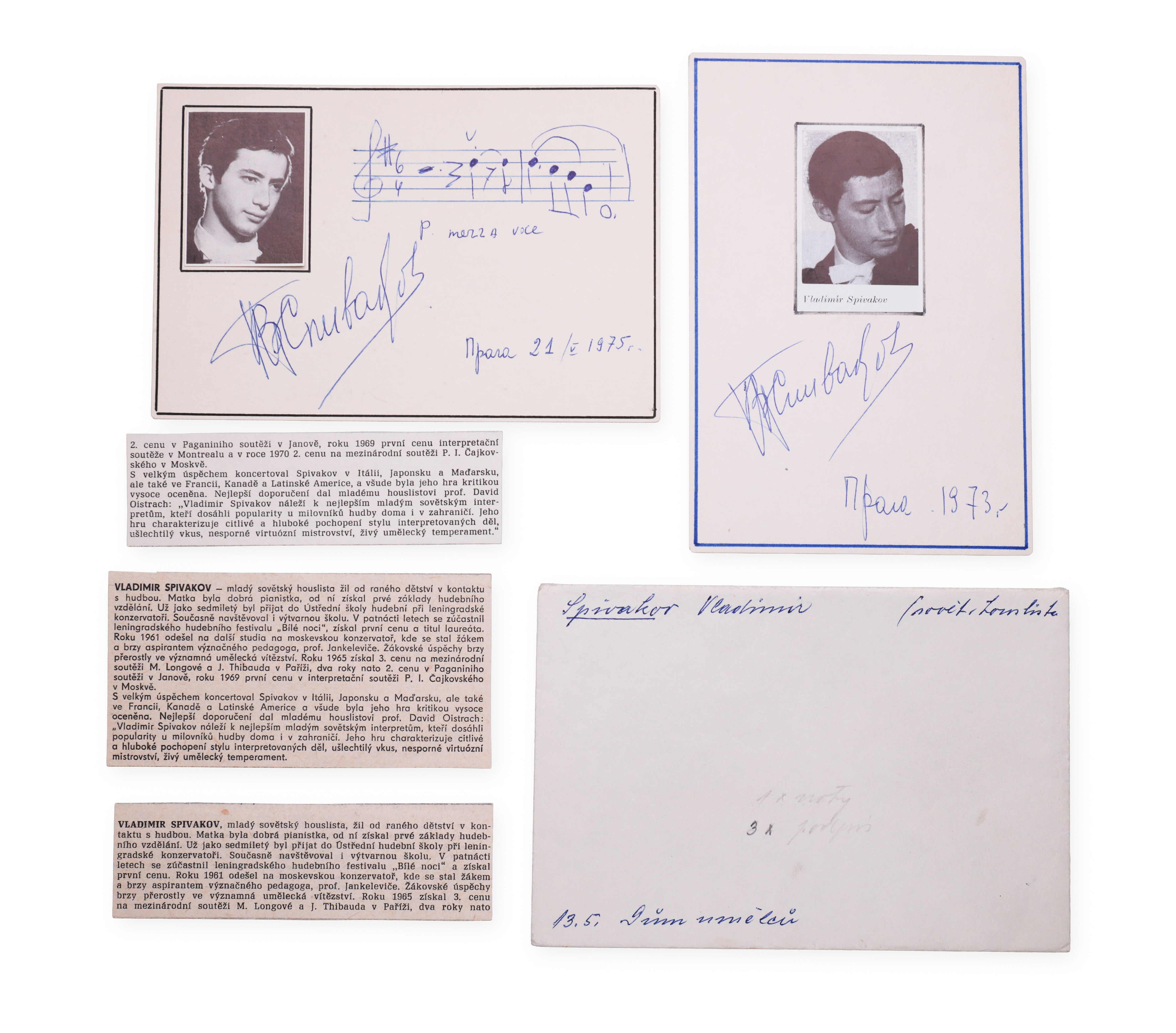 21 May 1975 / 1973 | second name: Спиваков Вл. | profession: Conductor | country: Russia | size: 105 x 156 mm / 156 x 105 mm | technique: ballpoint