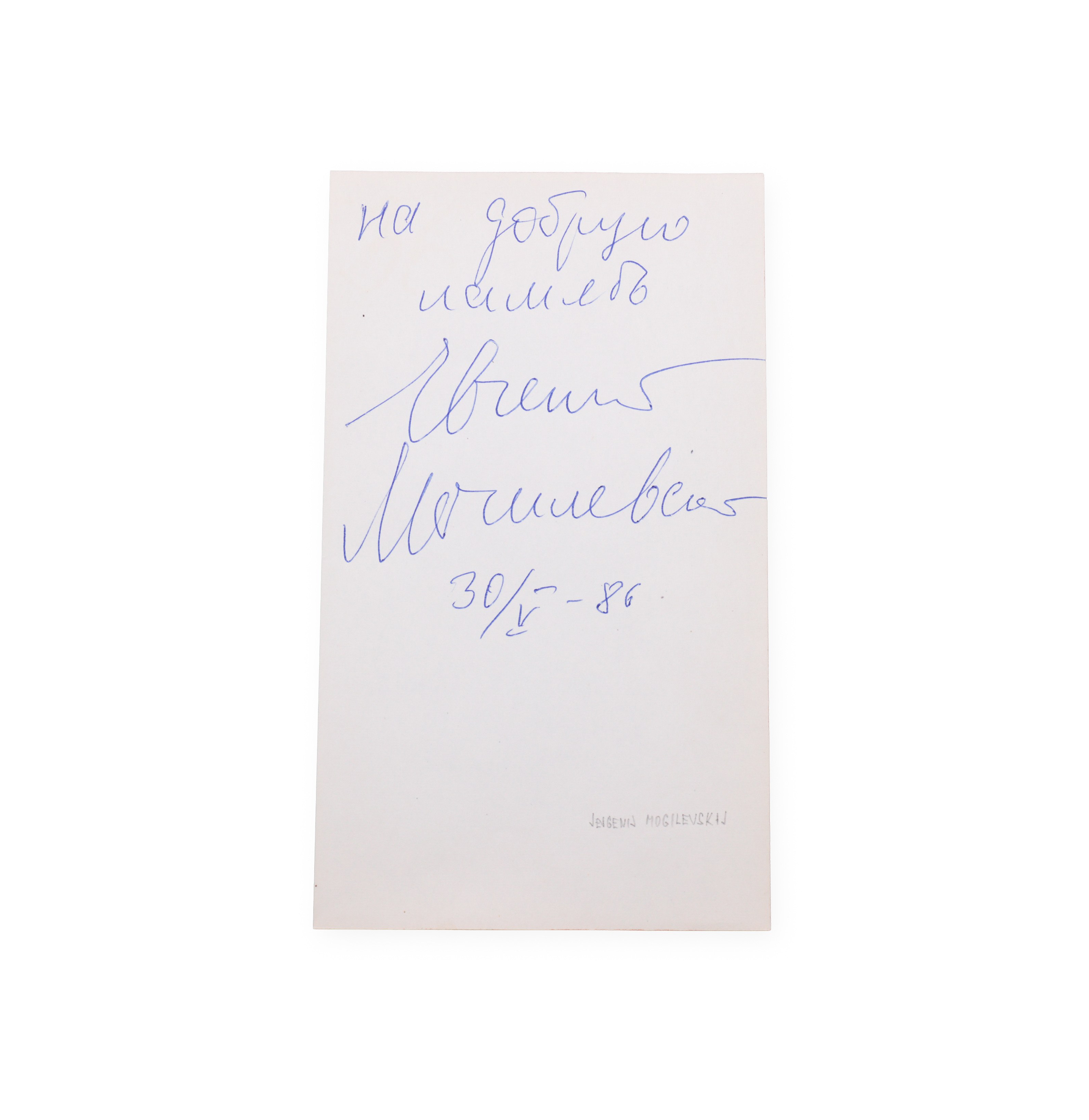 Yevgeny Mogilevsky - Russian pianist with an international career. Signature with dedication and date on a ticket from the memorial dated 30/04/1986, an authentic document connected with his musical activity.___________________________________________________________________________