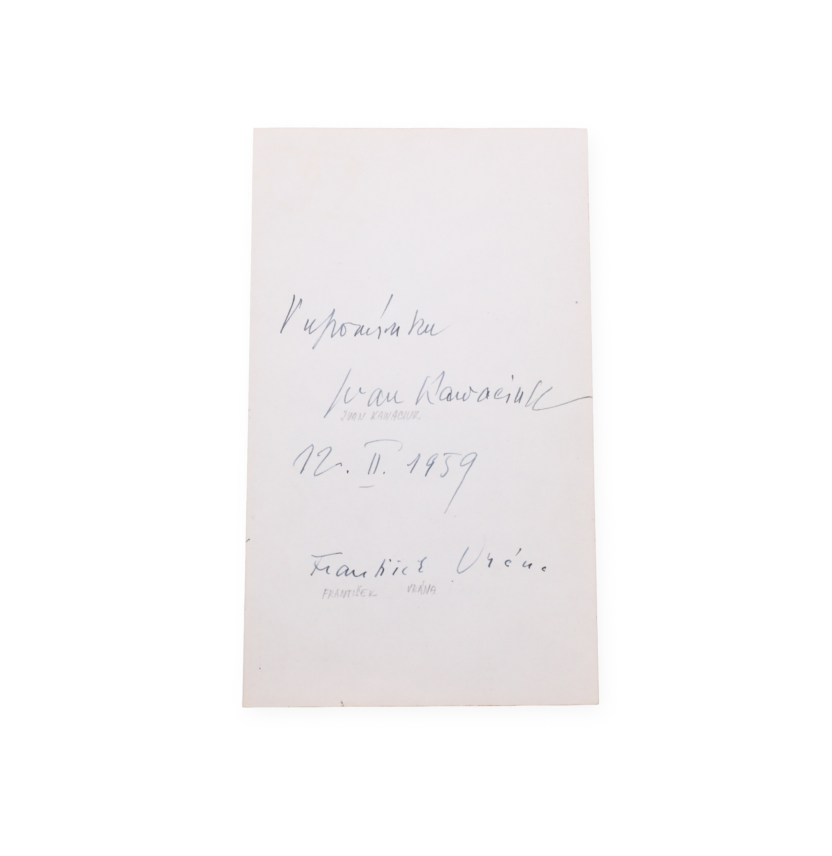 Ivan Kawaciuk, František Vrána (1913 / 1914 - 1966 / 1975) | signatures on the ticket