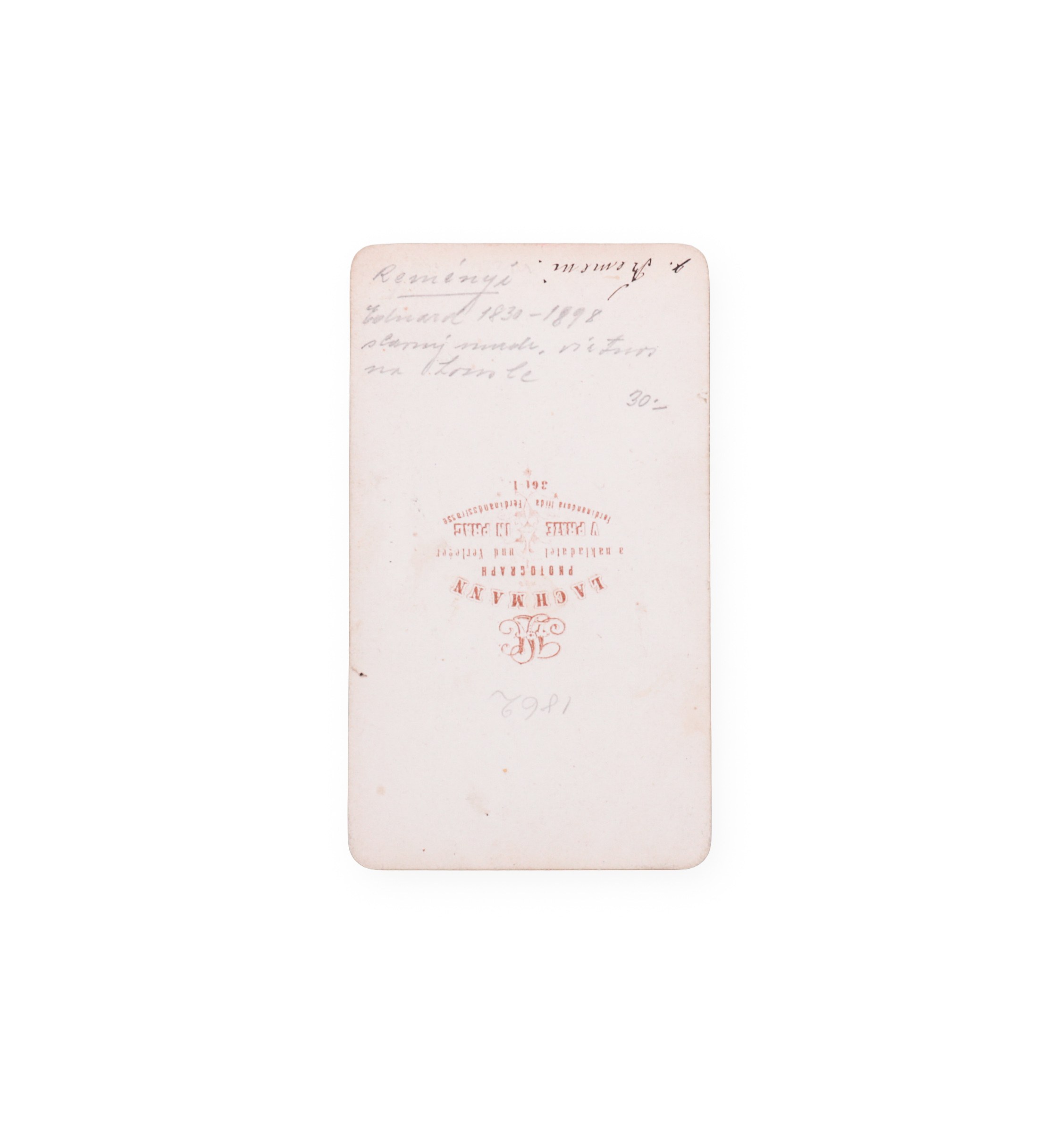 Cabinet portrait of violin virtuoso Eduard Reményi from 1862, without signature or manuscript record. Eduard Reményi, a Hungarian violinist and composer, was known for his charismatic performance and a significant influence on the young Johannes Brahms, with whom he performed concerts in his youth. He belonged to the most prominent representatives of romantic violin art of the 19th century.___________________________________________________________________________