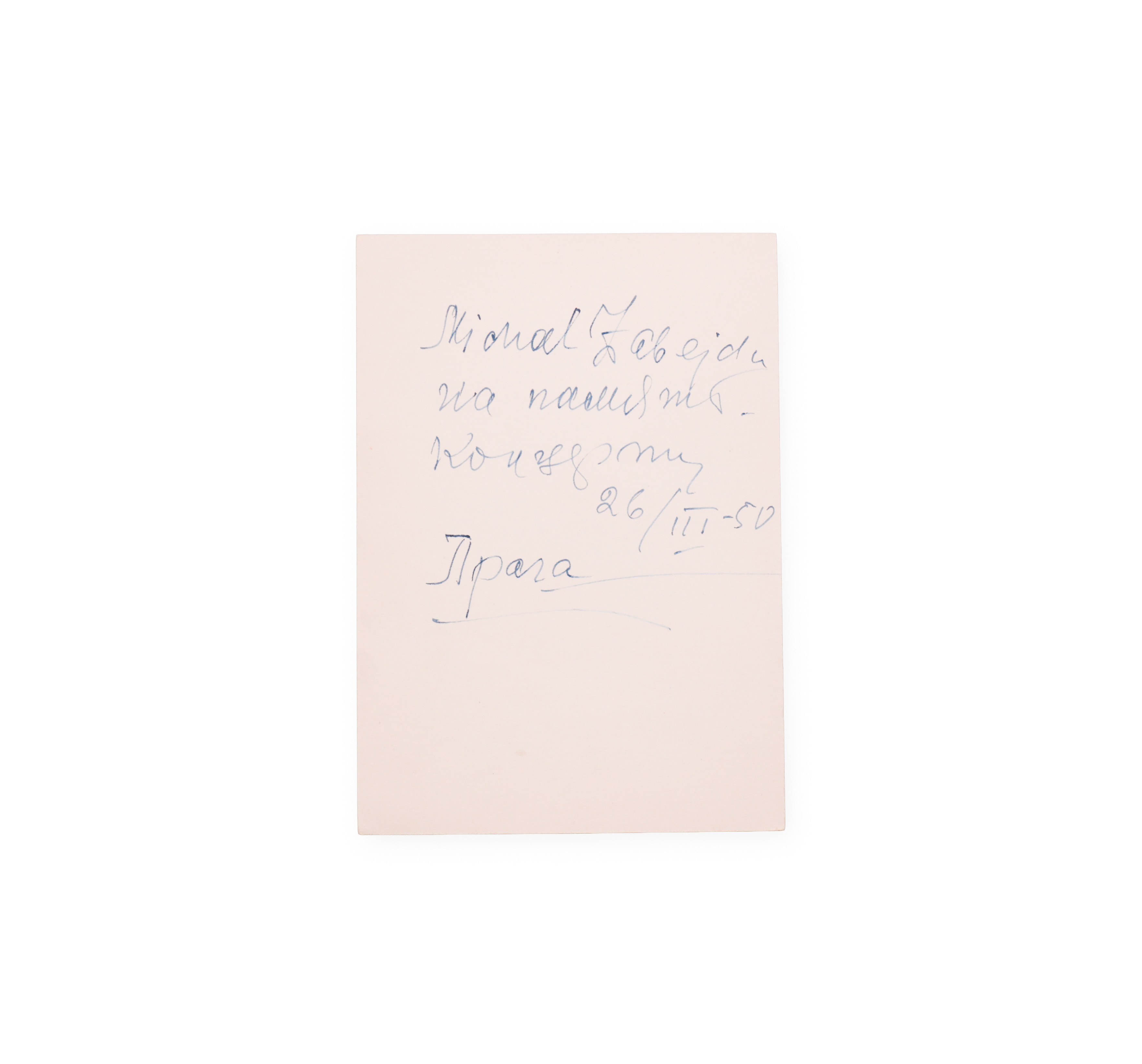 Handwritten dedication in Russian with the signature of Michas Zabejda-Sumicky on a scrap of paper, dated March 26, 1950. Michas Zabejda-Sumicki was a Belarusian writer, poet and cultural figure who worked in exile and devoted himself to literary work aimed at preserving the Belarusian identity. The dedication represents a personal trace of his work in the diaspora and recalls his commitment to the benefit of Belarusian culture outside the homeland.___________________________________________________________________________