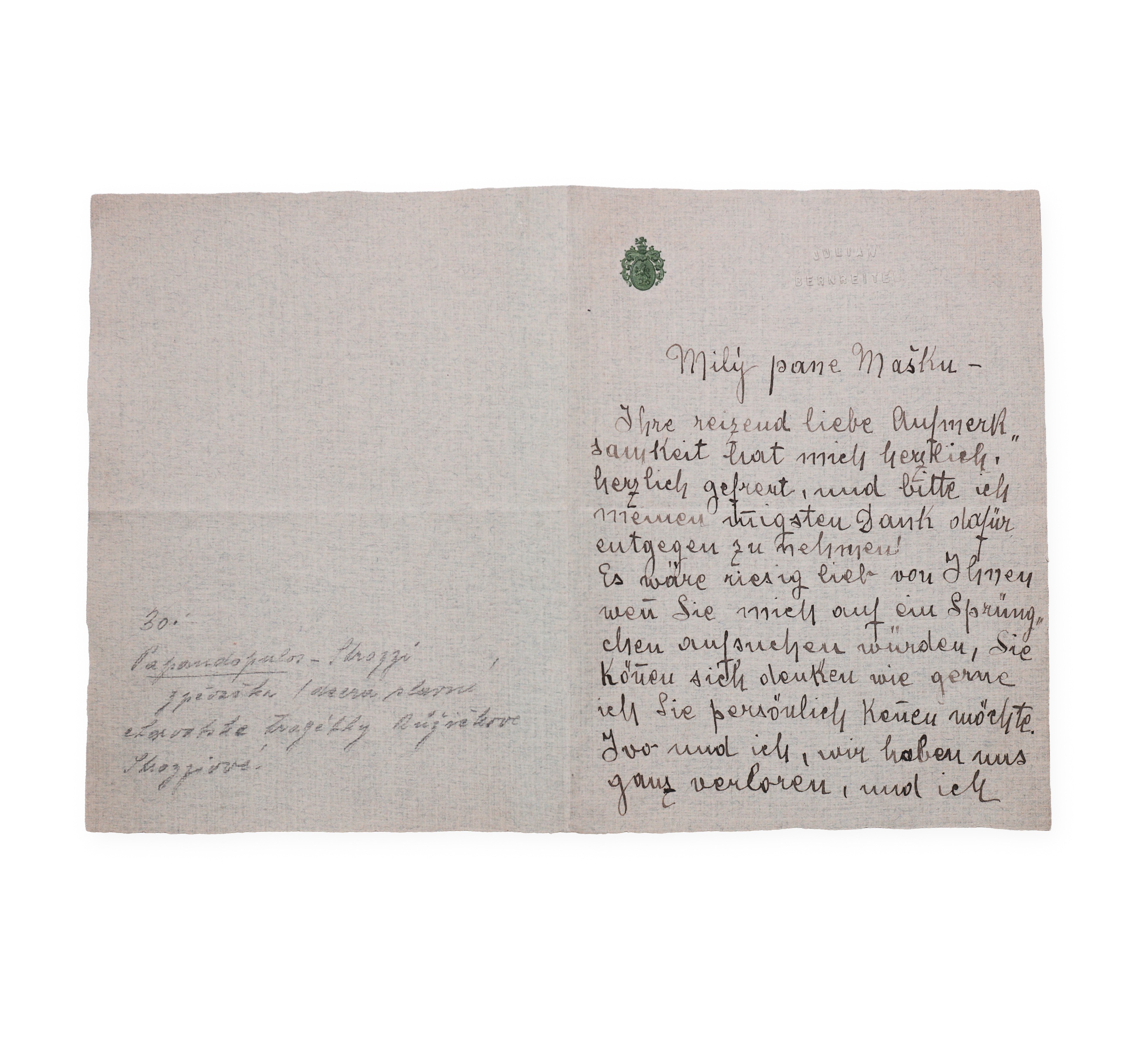 Handwritten letter in German with handwritten signature in full name and dated "21.11.1907", written on letterhead "julian Bernreite". The author is Boris Papandopulo, later an important Croatian composer and conductor, known for his stylistic diversity and original combination of classical form with elements of folklore and modernity. Considering the dating, this is a remarkable document from the early period of his life.___________________________________________________________________________