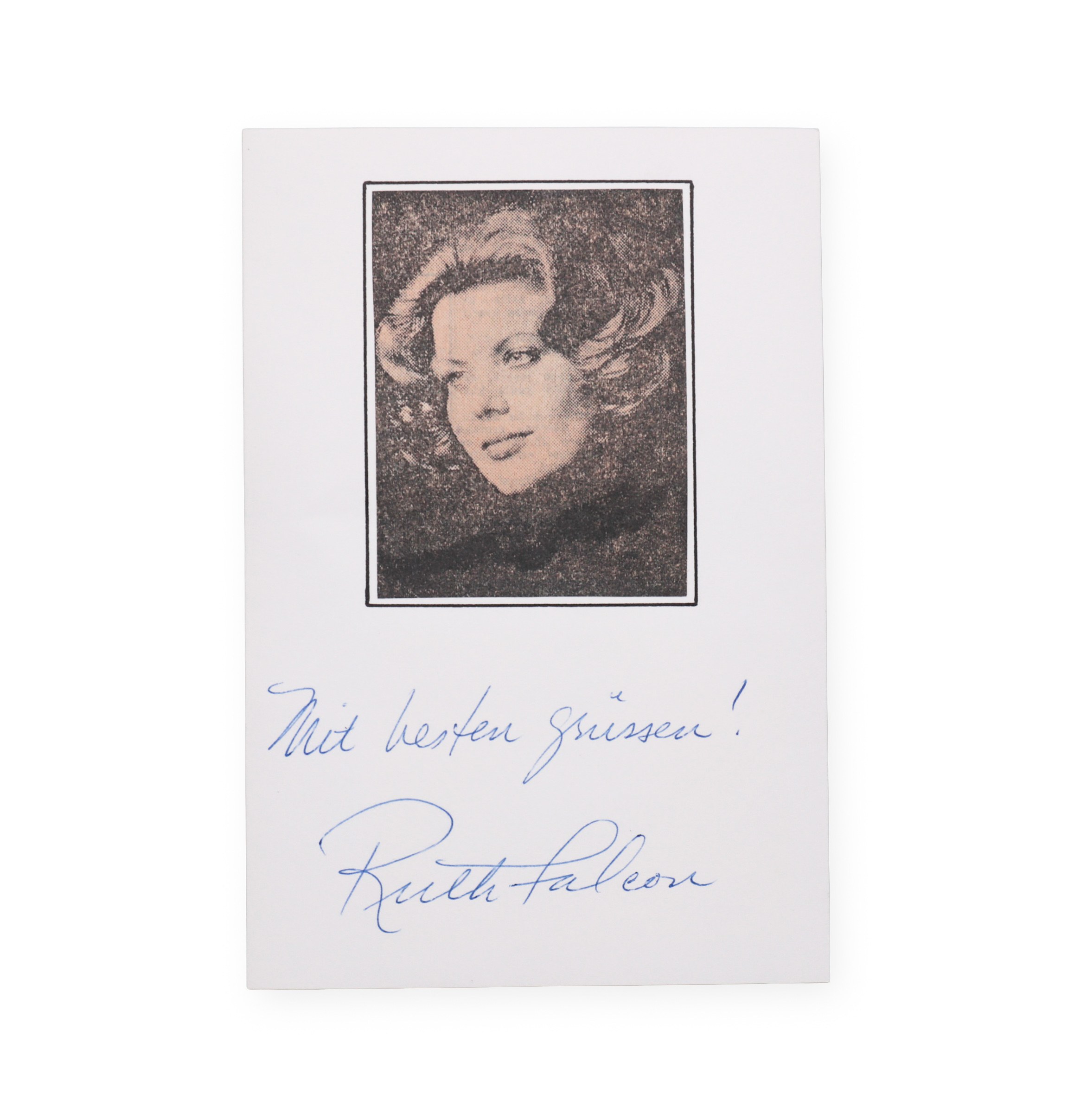 Photograph of American soprano Ruth Falcon with a personal handwritten dedication and handwritten signature with her full name directly on the image. Ruth Falcon, a recognized representative of the dramatic soprano field, performed on the world's leading opera stages and, after completing her singing career, devoted herself to teaching, during which she nurtured a number of outstanding singing talents.___________________________________________________________________________