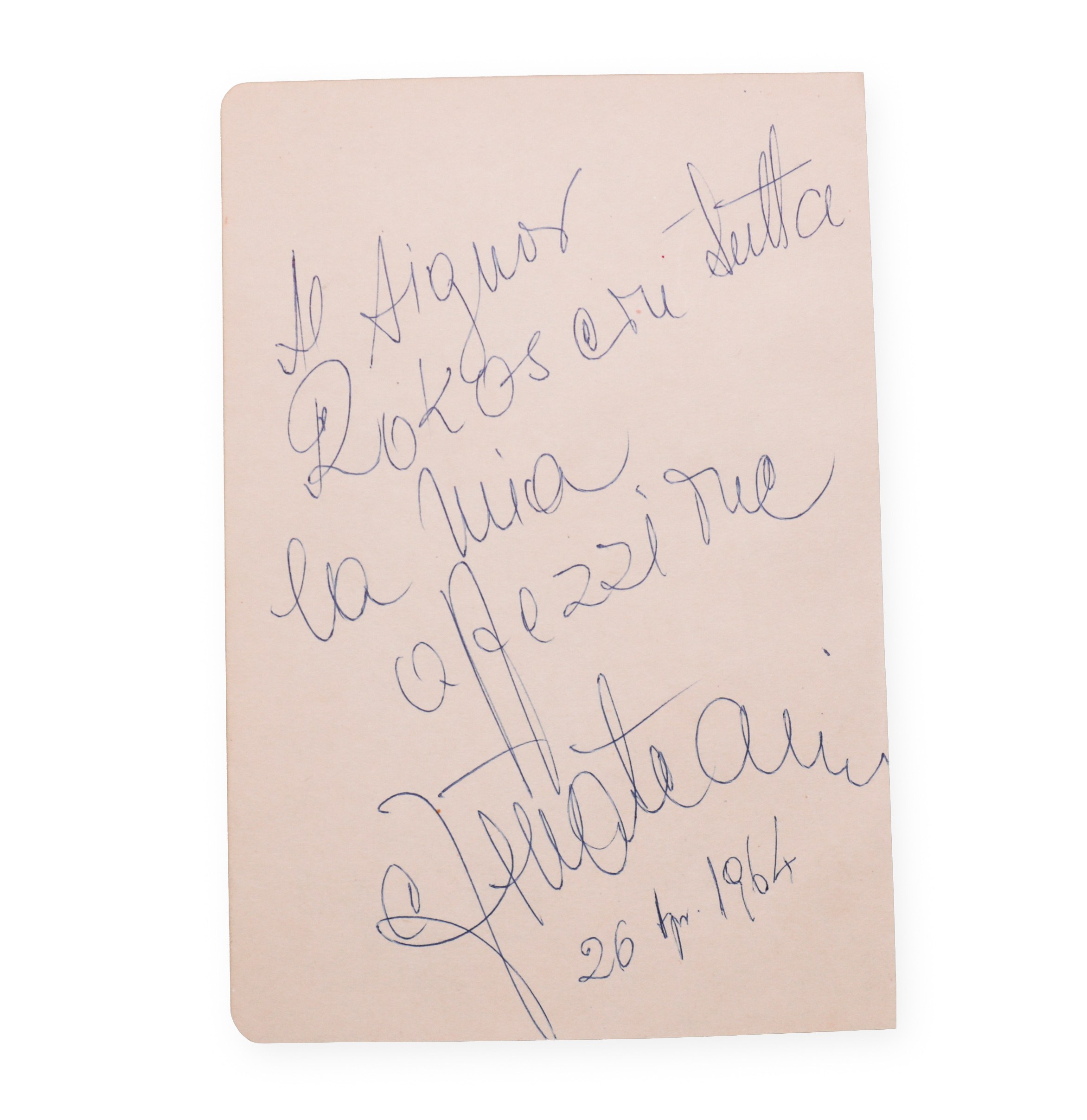 Scrap of paper with handwritten text in Romanian, signed and dated "26.4.1964" by baritone Cornelius Fânățean. Corneliu Fânățeanu, the leading Romanian opera singer of the second half of the 20th century, was valued for his rich vocal range and impressive interpretation of both classical and national repertoire.___________________________________________________________________________