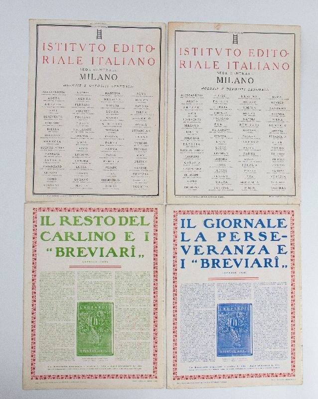 Lot of four magazines from 1916 titled GLI AVVENIMENTI, covers designed by Giacomo Balla, Sironi, and Duilio Cambellotti.Good condition.