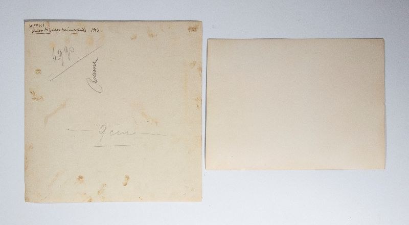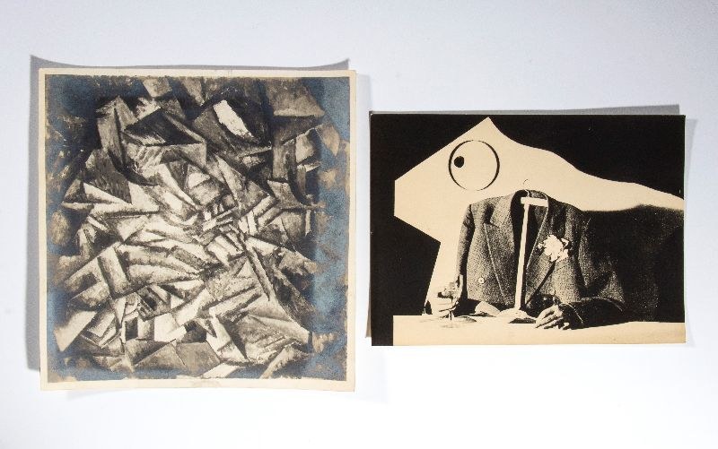 Lot Two mid-20th-century black-and-white photographs/photographic prints with a Futurist subject. One on the back features the handwritten caption "SOFFICI - SINTESI DI PAESE PRIMAVERILE - 1913" in black ink, while the other reproduces TATO's famous Futurist composition "Il Perfetto Borghese" from 1930.Various sizes, approximately 20x15 cm and 21x21 cm.In excellent condition.