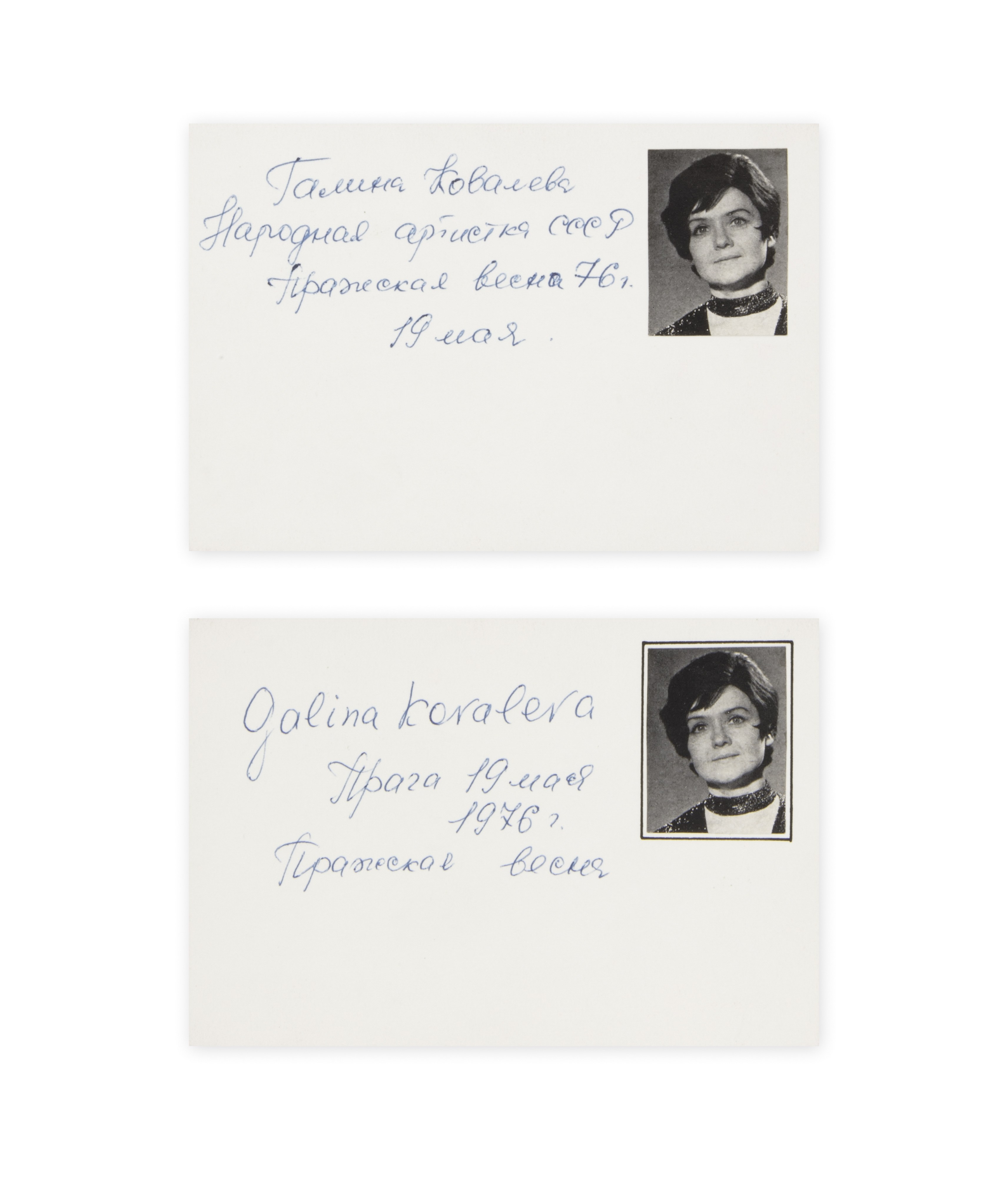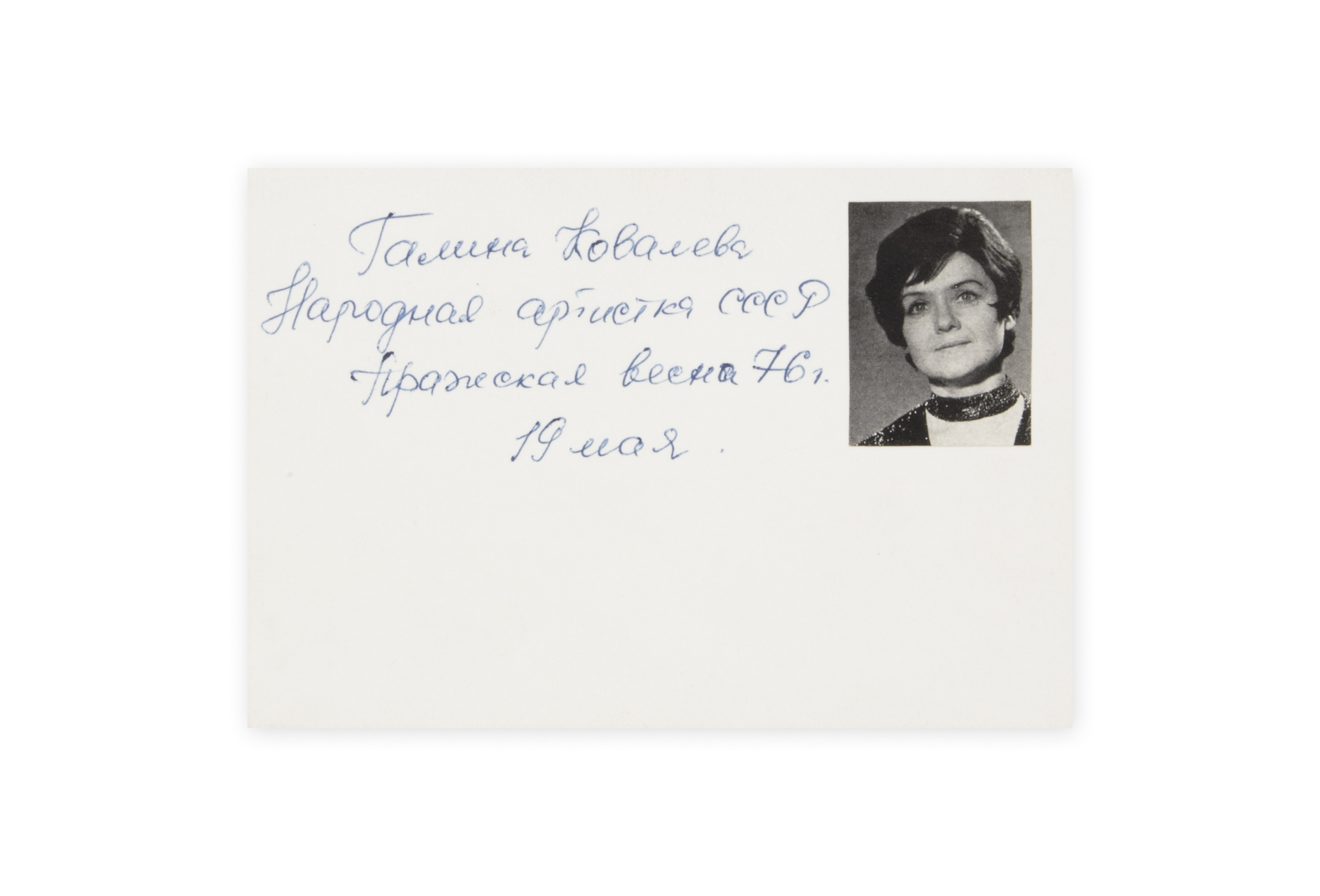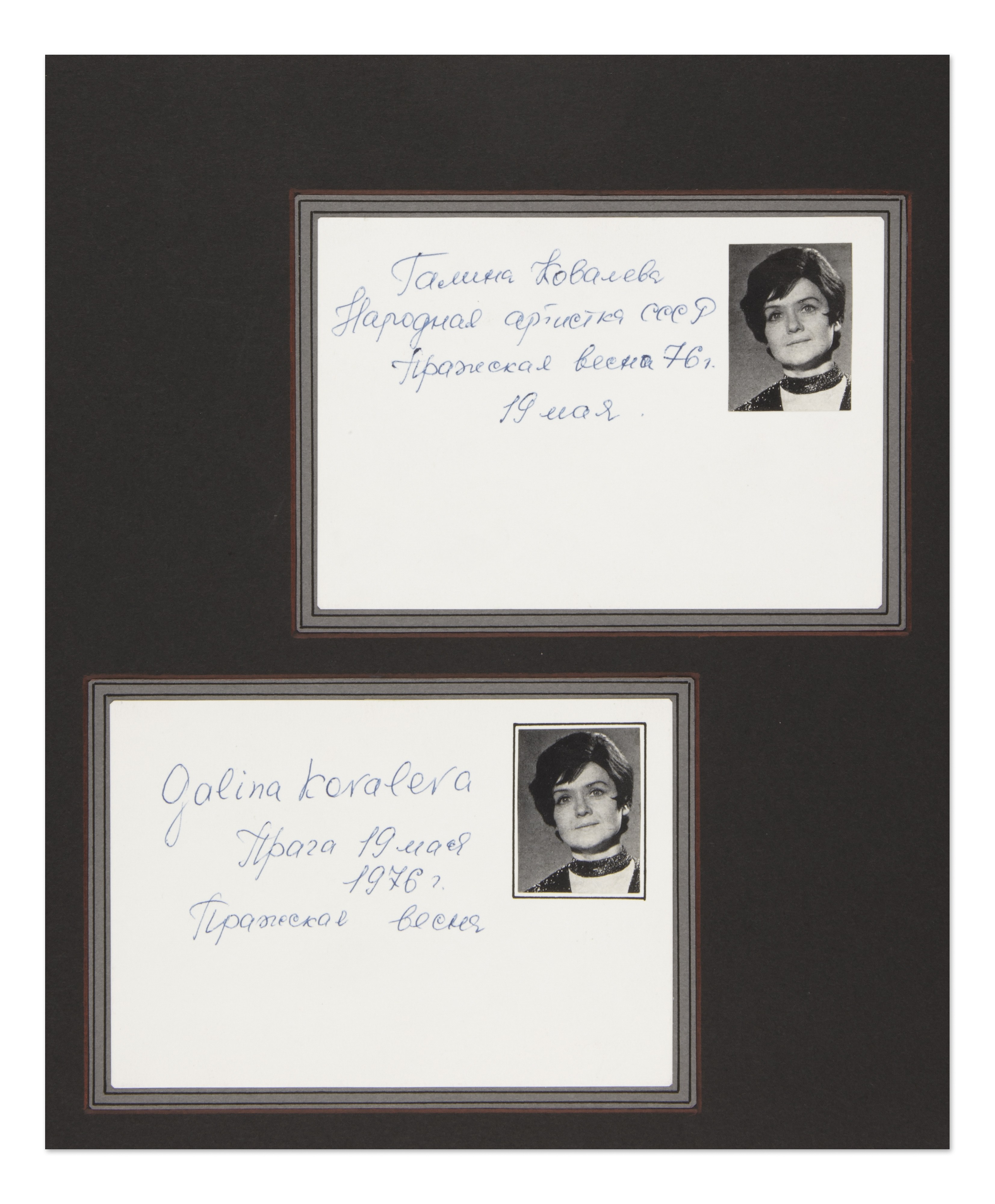 Galina Kovalyova was an important soprano active in the Great theater in Moscow, known primarily for its interpretations of classic Russian operas. These signatures come from her stay in Prague during the Prague Spring International Music Festival in 1976.