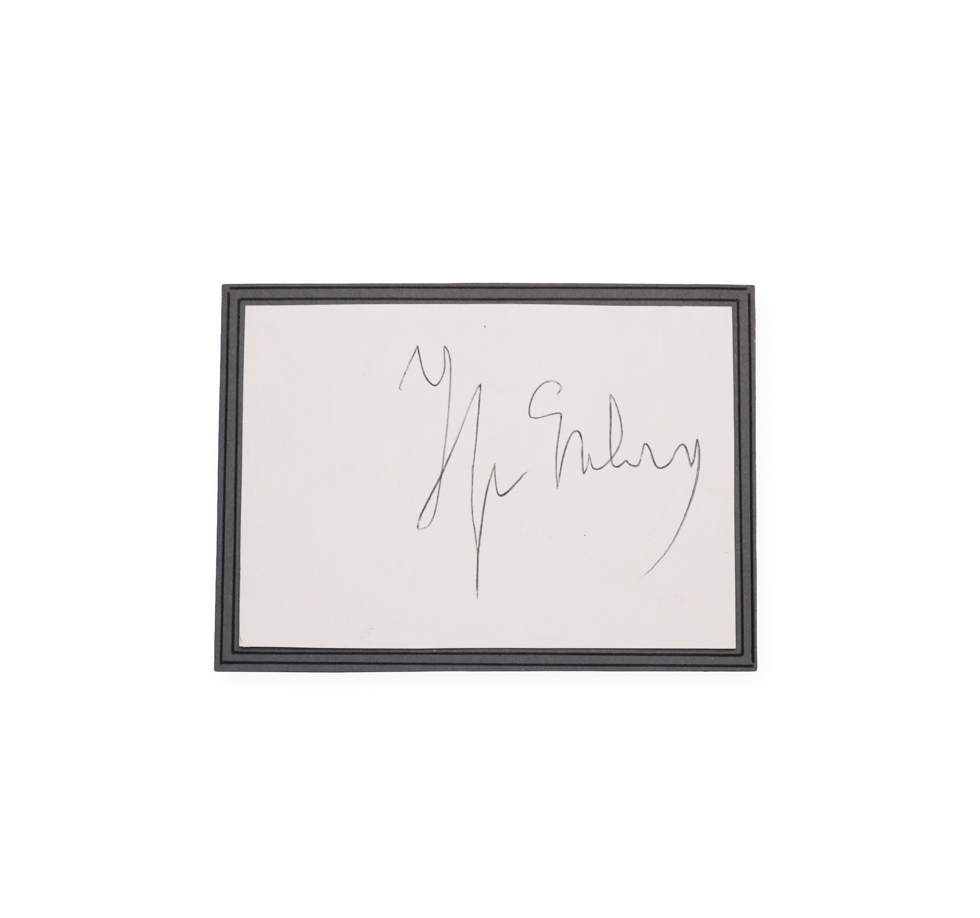 Signature of the Russian writer, journalist and columnist Ilya Grigorevich Erenburg on a scrap of paper. A prominent figure in Soviet culture of the 20th century, known for his anti-war stances, reports from European battlefields and novels such as *The Melt* or *The Storm*. During World War II, he became one of the main voices of Soviet anti-Nazi propaganda. His style was suggestive, politically engaged and at the same time literary refined. The surviving signature is authentic proof of contact with one of the most influential intellectuals of his time.Bidders are obliged to inform themselves about the condition of the lots before the auction, subsequent complaints will not be taken into account.