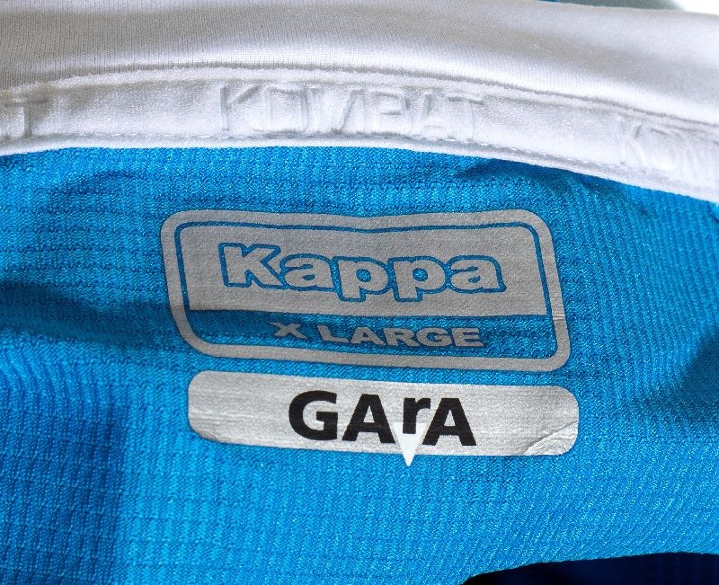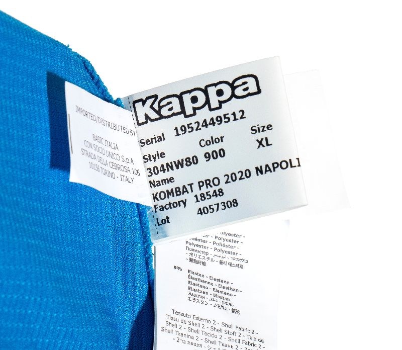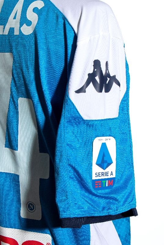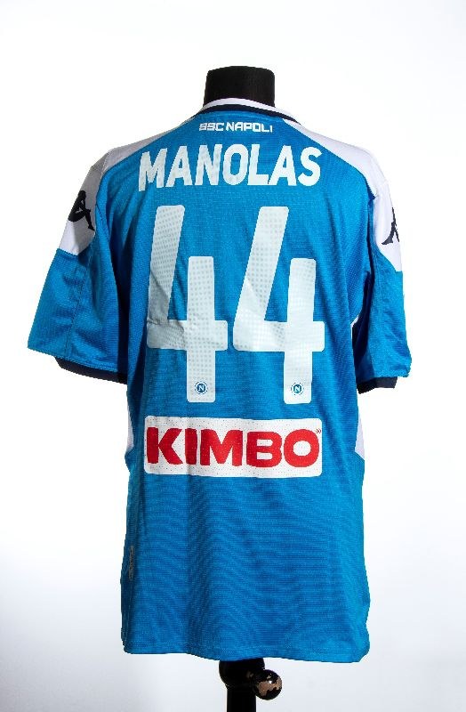 SSC NAPOLI home match jersey, short sleeve, Kappa jersey, single-button collar, internal labels with code 1952449512 - KOMBAT PRO 2020 NAPOLI - KAPPA XLARGE MATCH on the inside collarLight blue match jersey issued, from stock for Kostas Manolas, 2019-20 season, in perfect conditionOn the front: sponsor LETE, MSC, Kappa logo, NAPOLI logoOn the sleeves: KAPPA logo, patch SERIE A TIM 1929 2019 on the right sleeveOn the back: SSC NAPOLI logo, number 44, name MANOLAS and sponsor KIMBO at the bottom, sublimationIn perfect conditionProvenance: Sports journalist, private collection