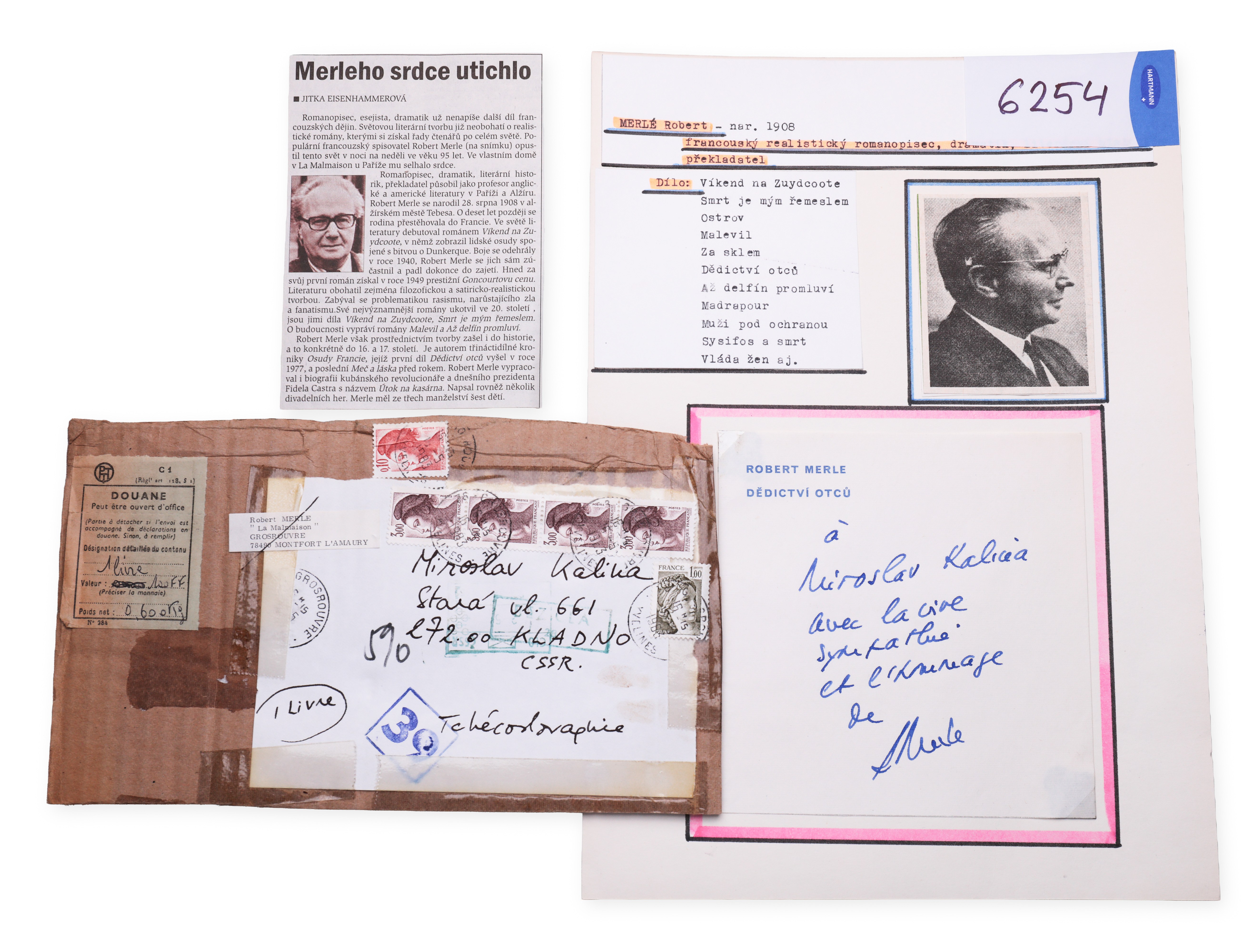 Robert Merle's signature with dedication on a leaf from the book "Legacy of the Fathers", complete with cover, placed on a collector's leaf. Robert Merle was an important French writer, known for his historical and socio-political novels, among which the cycle "The Legacy of the Fathers (Fortune de France)" and the famous novel "Malevil" stand out. His signature with a personal dedication represents a valuable collectible document associated with one of the most outstanding figures in French literature of the 20th century.Bidders are obliged to inform themselves about the condition of the lots before the auction, subsequent complaints will not be taken into account.