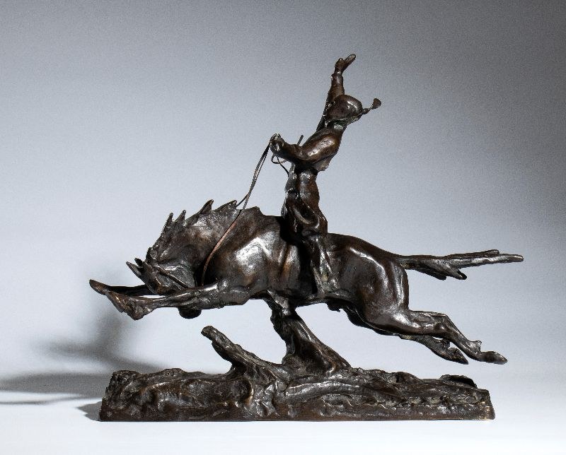 Duce on Horseback, bronze, signed Paolo Troubetskoy on the base.Important sculpture depicting a bold Benito Mussolini, standing astride a tamed "wild" horse.Dimensions: approximately 41 x 36 x 18 cm at the widest points.