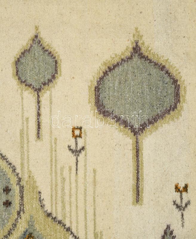 Németh Éva (1930-2019) textilművész: Nagyméretű faliszőttes pávákkal és virágos réttel. Hibátlan, 155x140 cm //...