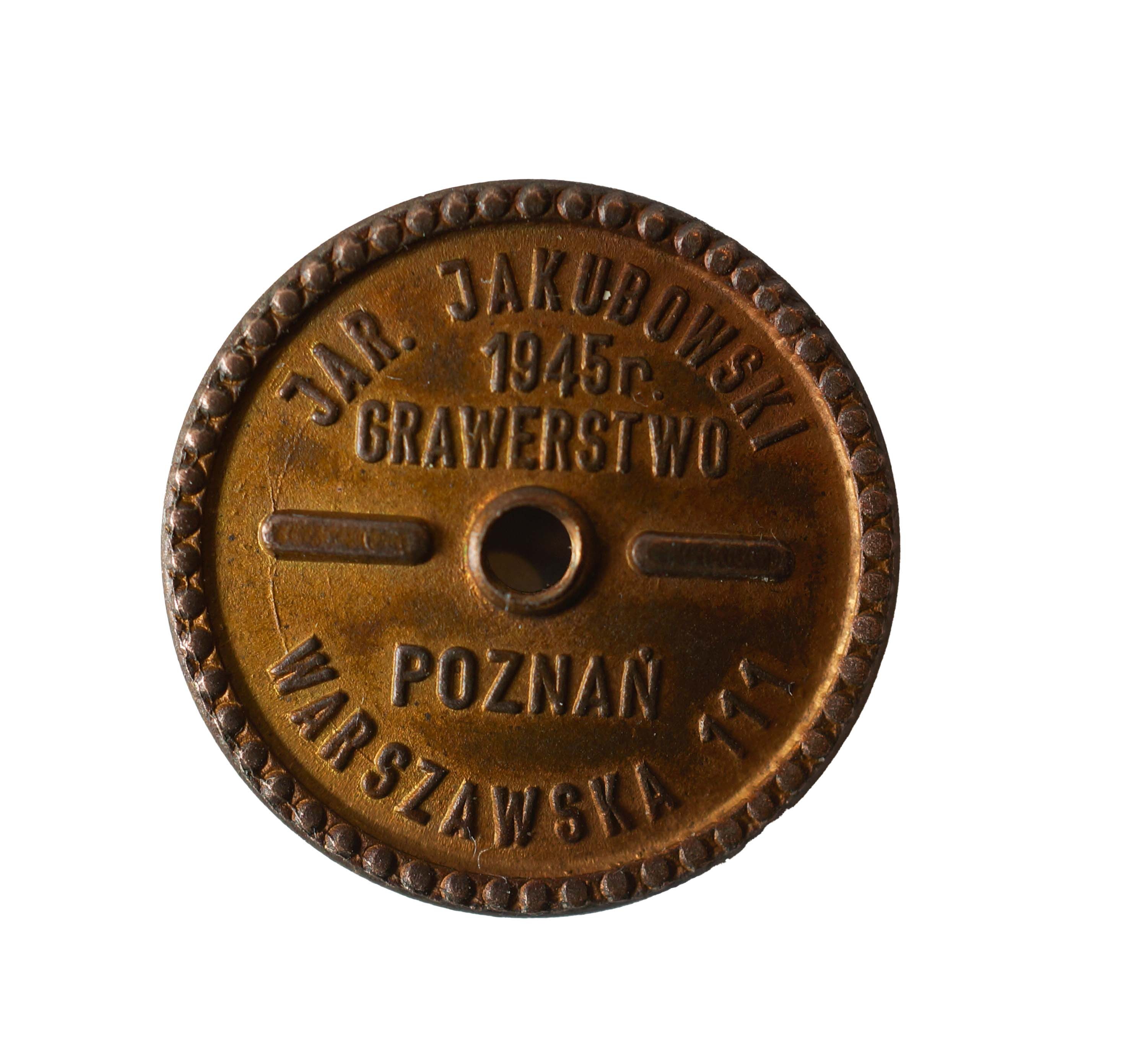 Odznaka 6 Pułk Łączności - Śrem , wersja w kolorze złotym wykonana z okazji 50-lecia pułku, wymiary: 31x24mm, nakrętka sygnowana: Jarosław Jakubowski, Poznań