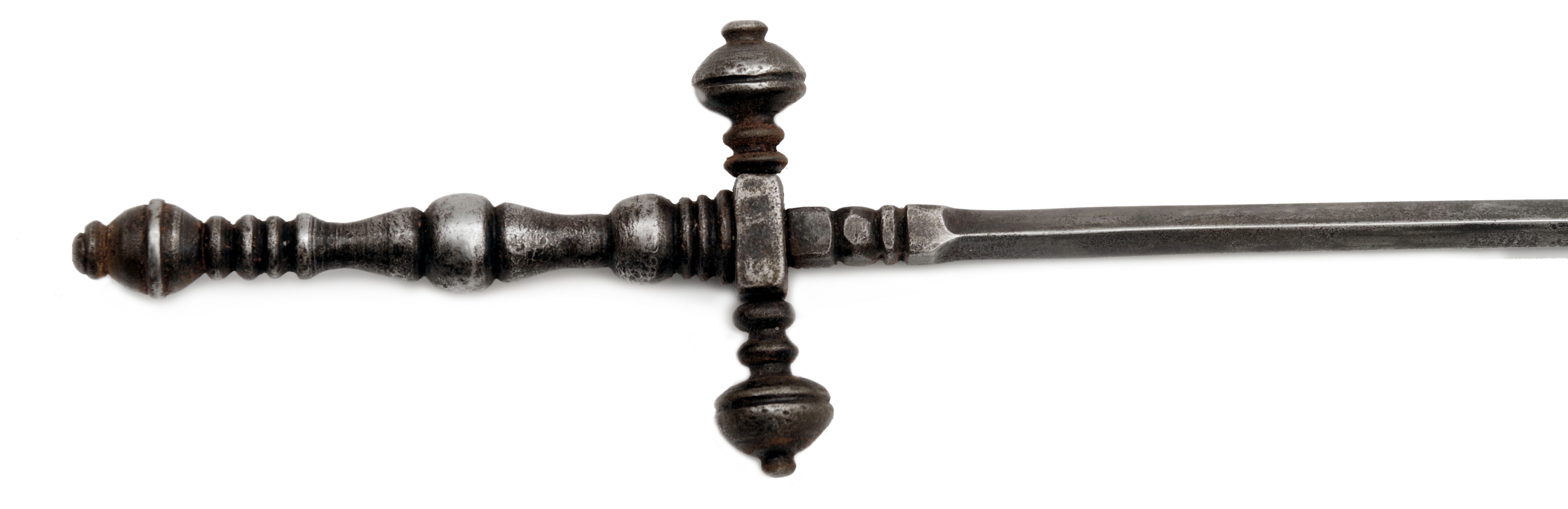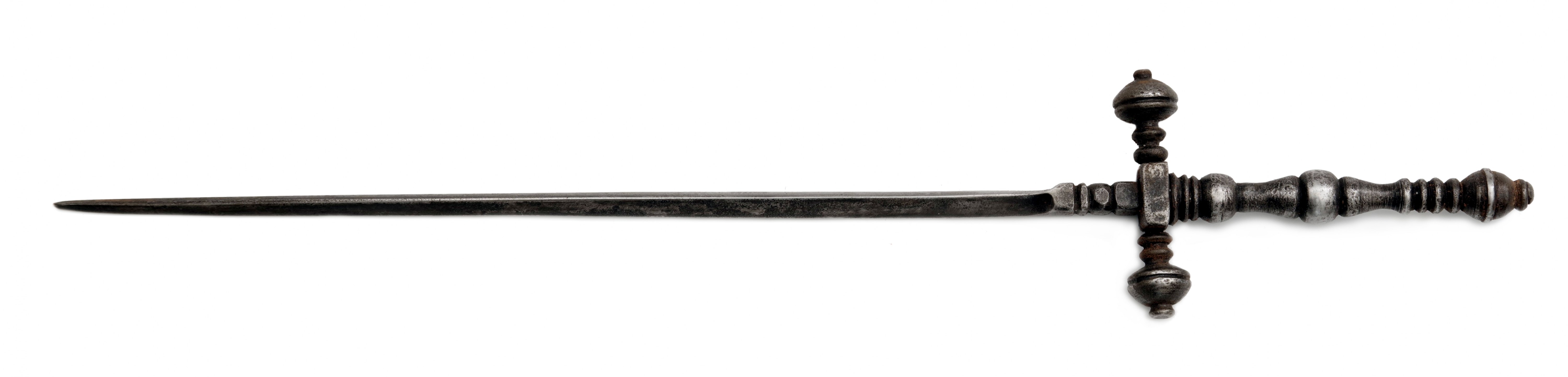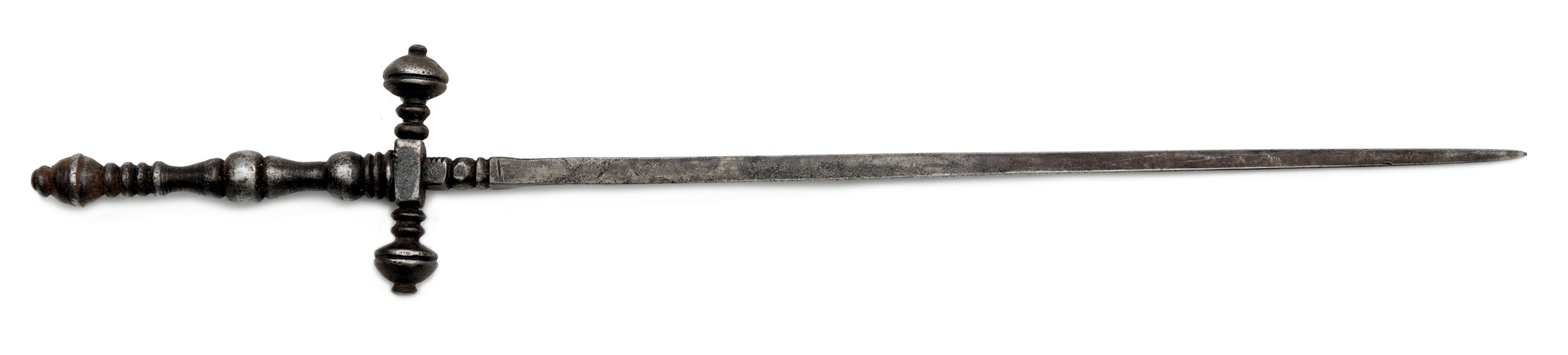 Trojhranná čepel na začátku balustrovaná, železný jílec s balustrovanou rukojetí. Německo kolem 1600, délka 31 cm. Stav 2+