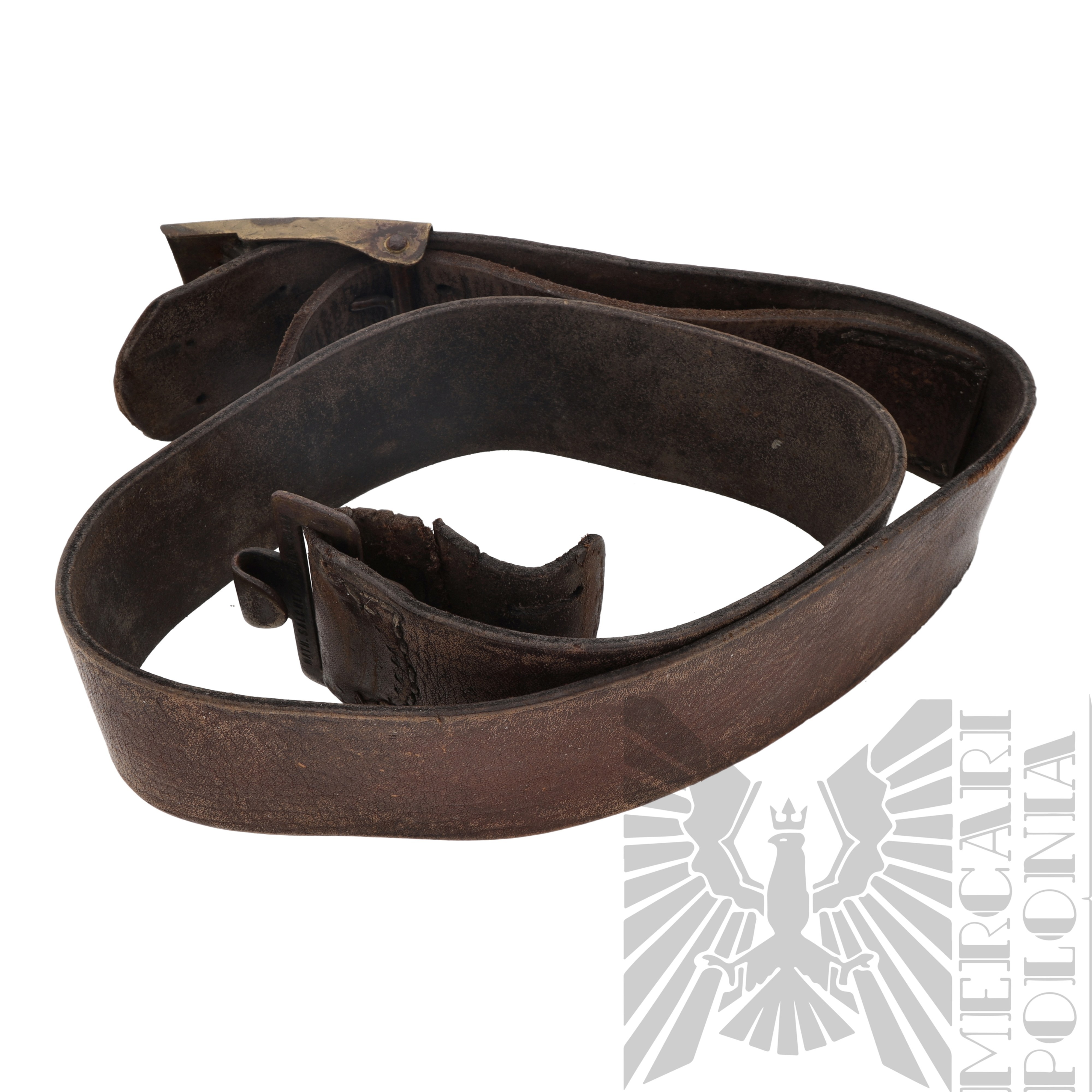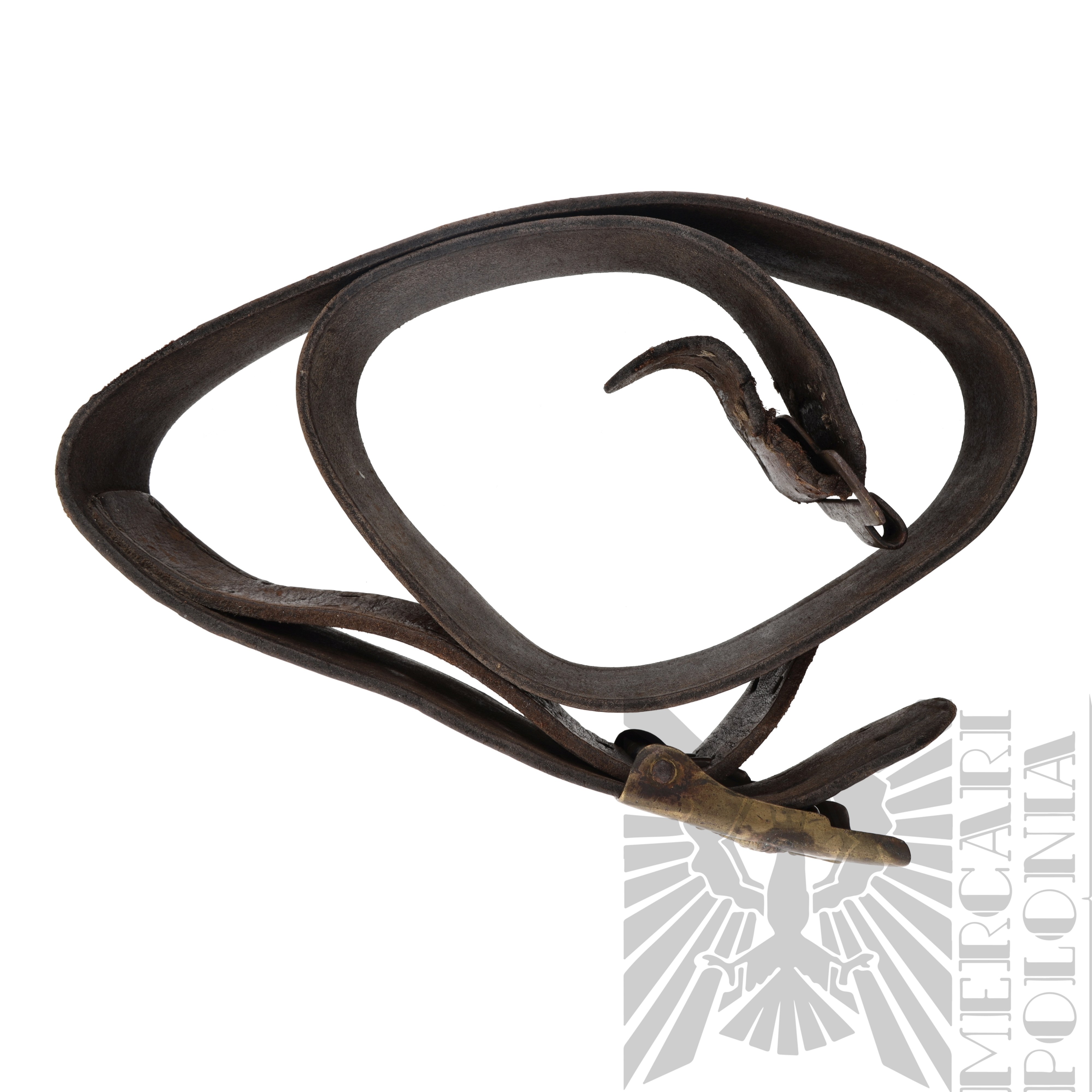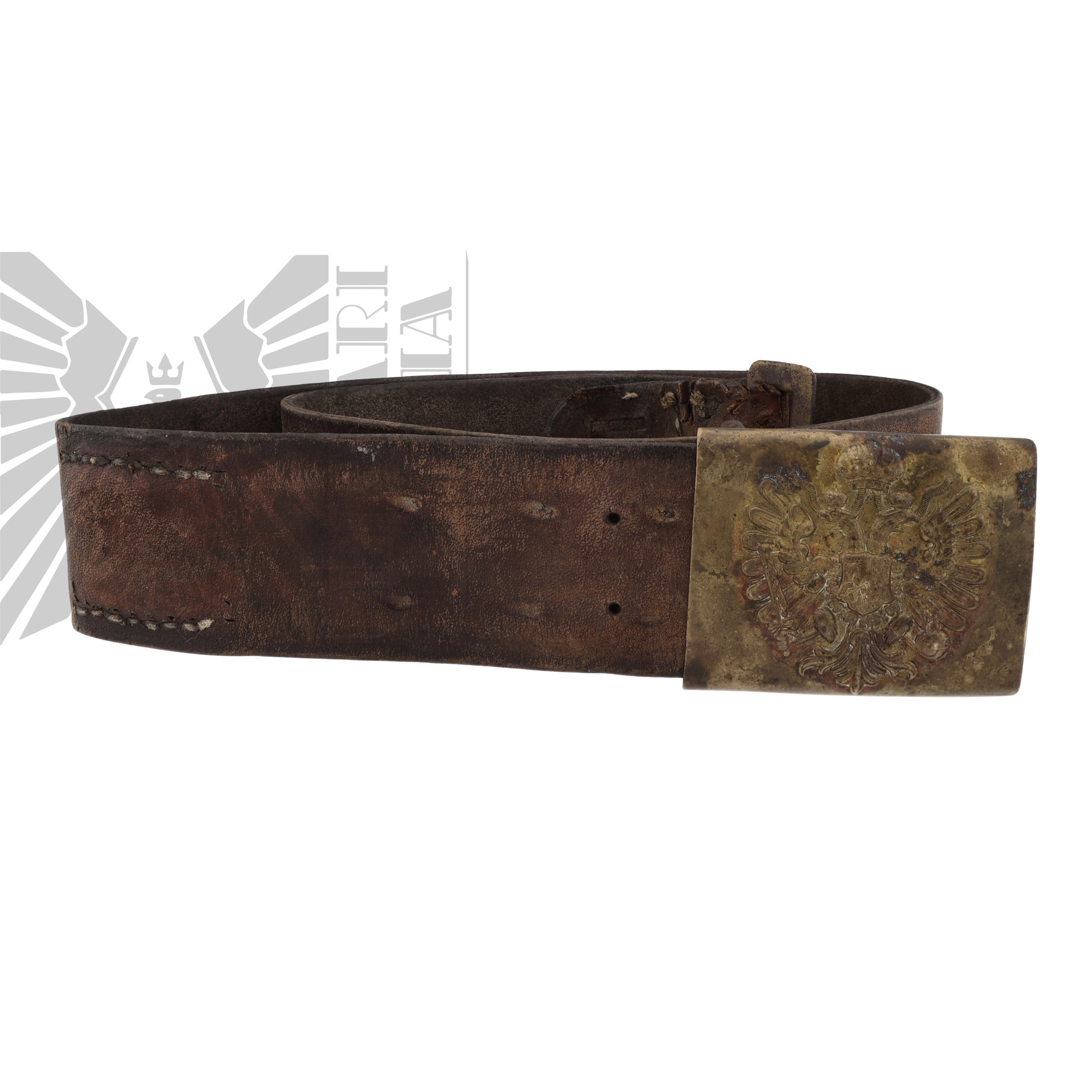 Pas wojskowy armii Austro-Węgierskiej z okresu I wojny światowej, wyposażony w dużą, tłoczoną mosiężną klamrę z wizerunkiem dwugłowego orła – herbu Austro-Węgier. Całkowita długość to około 89 cm.
