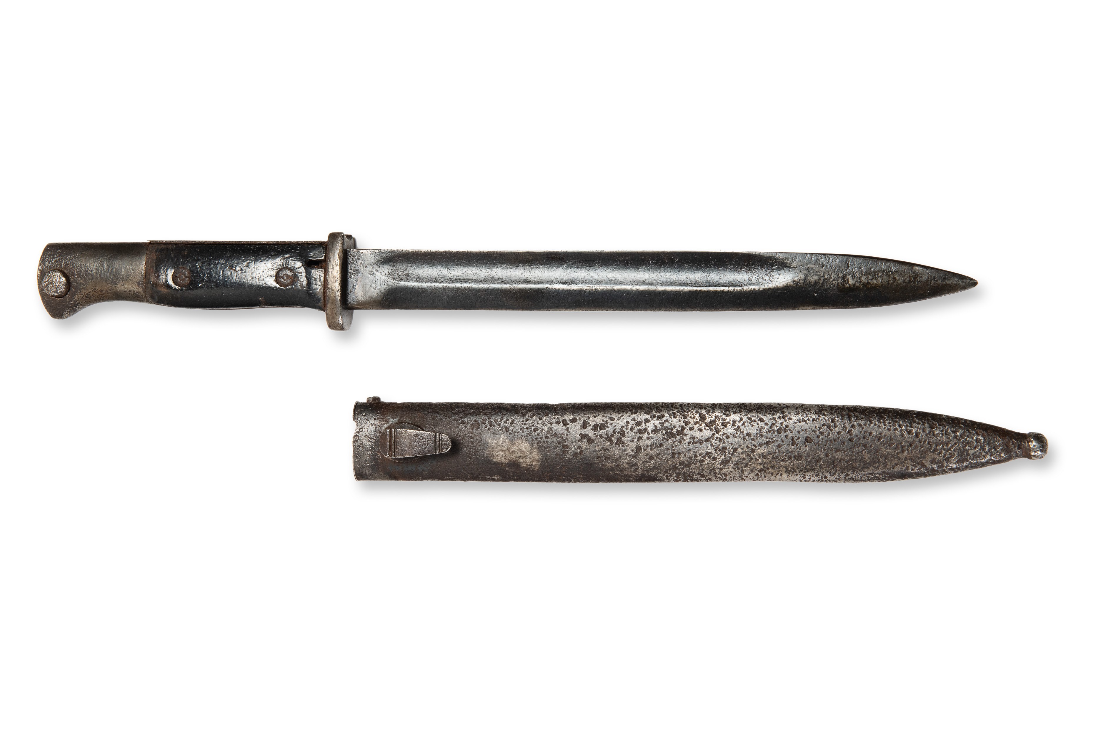 Model 84/98 bayonet, made in Germany in 1937. Originally intended for Mauser 98 rifles, this bayonet is marked "GOTTLIEB Hammesfahr SOLINGEN FOCHE" on the blade, "W 17" on the back of the blade, and "COPPEL GMBH 1937" on the scabbard. The bayonet was made in Solingen, known for its tradition of producing quality weapons and tools. The blade of this bayonet comes from an older WWI bayonet, making it an interesting historical artifact. The scabbard shows heavy signs of corrosion, indicating that the bayonet has been exposed to prolonged use. The blade was later blackened, which is not the original treatment. This bayonet is a valuable collector's item from the Second World War period.***IMPORTANT NOTICE***