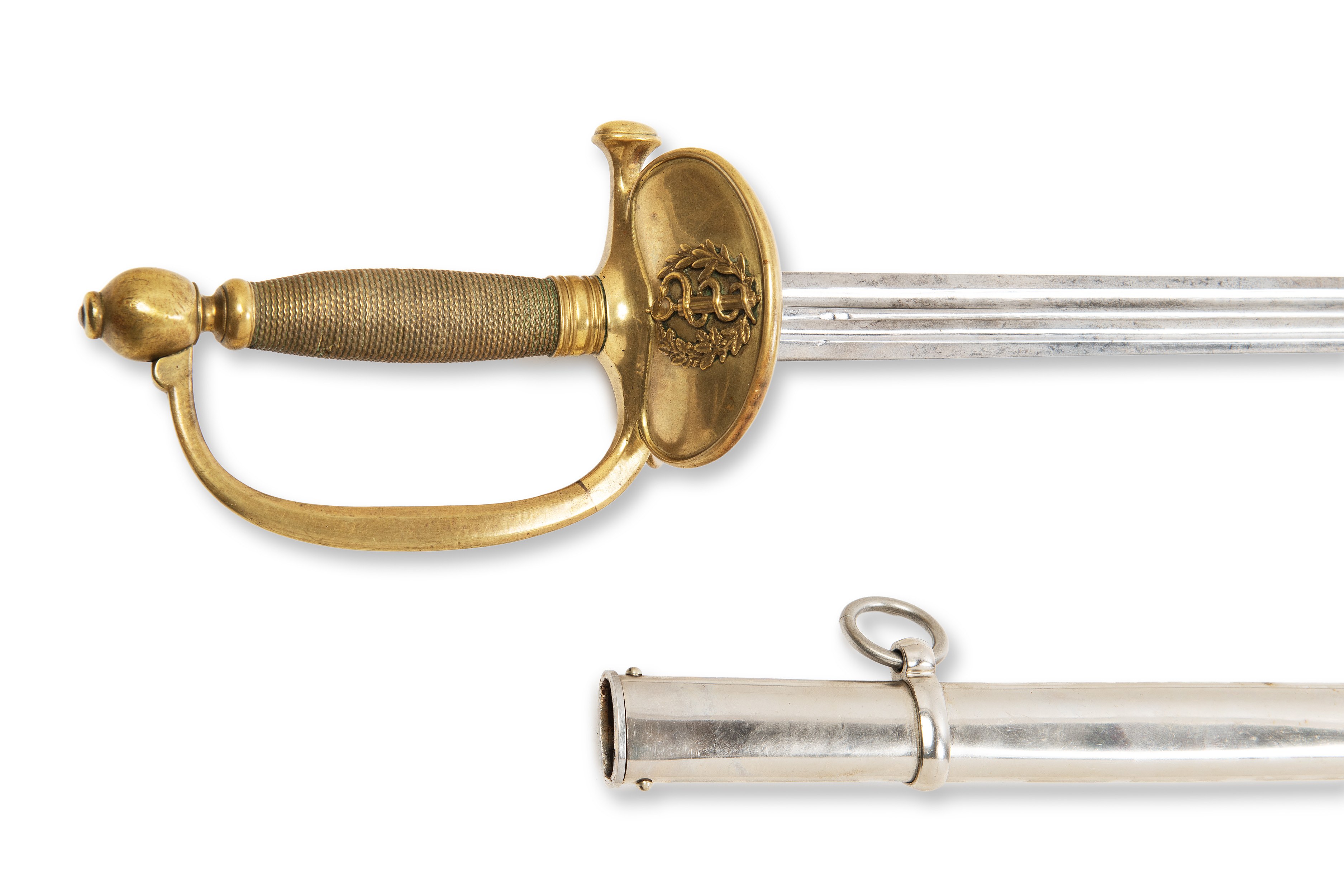 Circa 1900 French Military Medical Officer M1884 Cord Made in Klingenthal, France by Coulaux & Cie. On the blade is the signature "Coulaux Klingenthal", which indicates a renowned manufacturer. The weapon number is 727. This cord was intended for French military medical officers and was used for both ceremonial purposes and official military occasions. The cord comes with a scabbard, which is part of the original packaging and indicates the careful maintenance and preservation of the weapon.***IMPORTANT NOTICE***