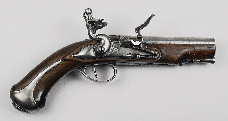 Lufa stalowa, ośmiogranna, gładka, zbieżna, z warkoczem, opatrzona w partii grzbietowej licznymi cechami charakterystycznymi dla manufaktury hiszpańskiej. Łoże orzechowe długie, z owalną głowicą kolby osłoniętą okuciem o długich wąsach. Dekoracyjny wykrój kontr płyty, osłony spustu i okuć tulei obojczyka.