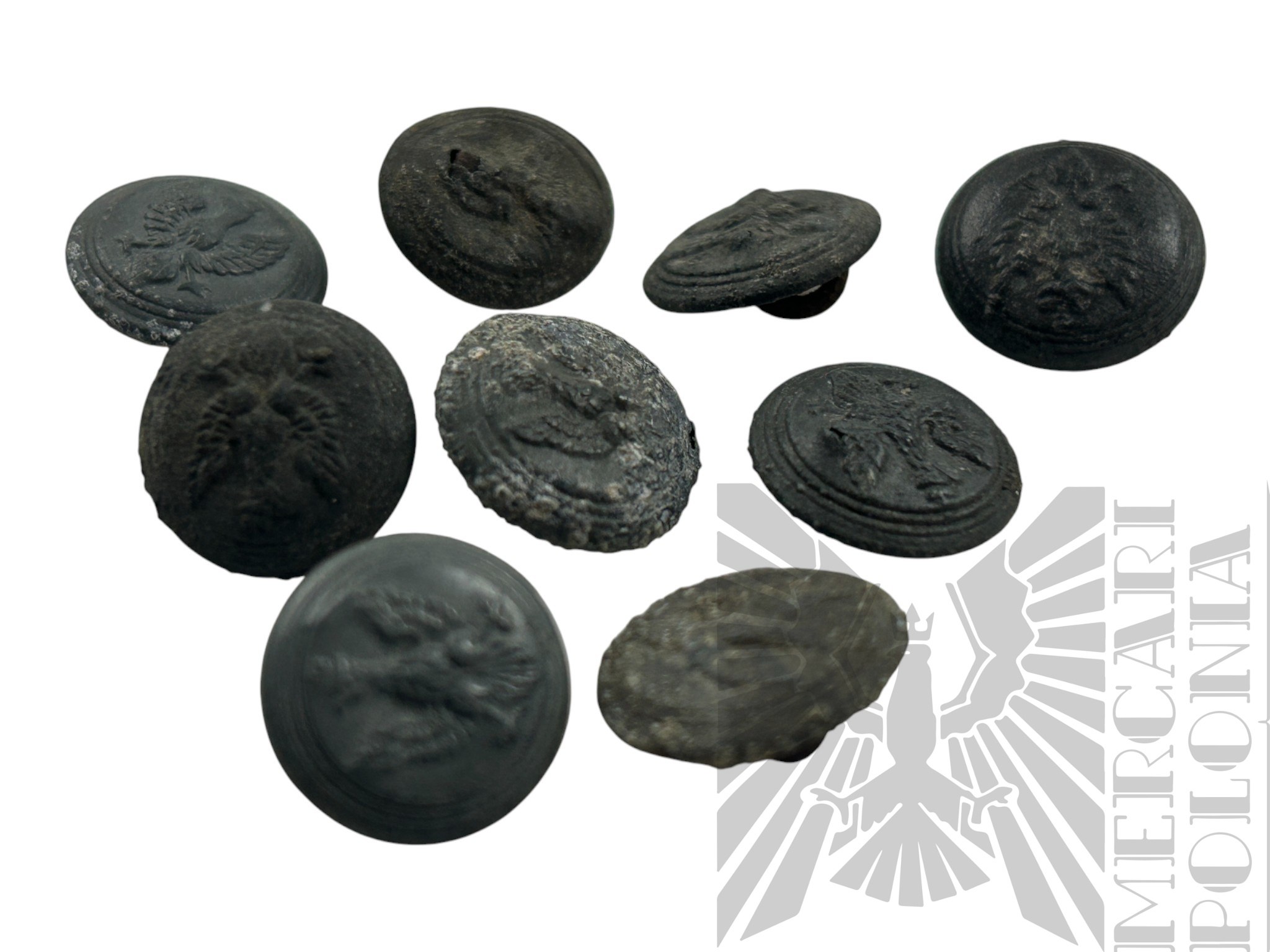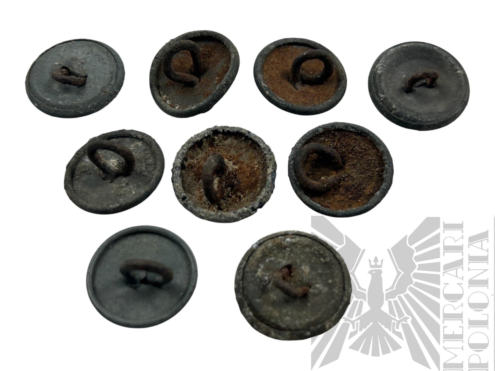 Zestaw 9 małych guzików wz.19 kieszeni lub naramiennika.