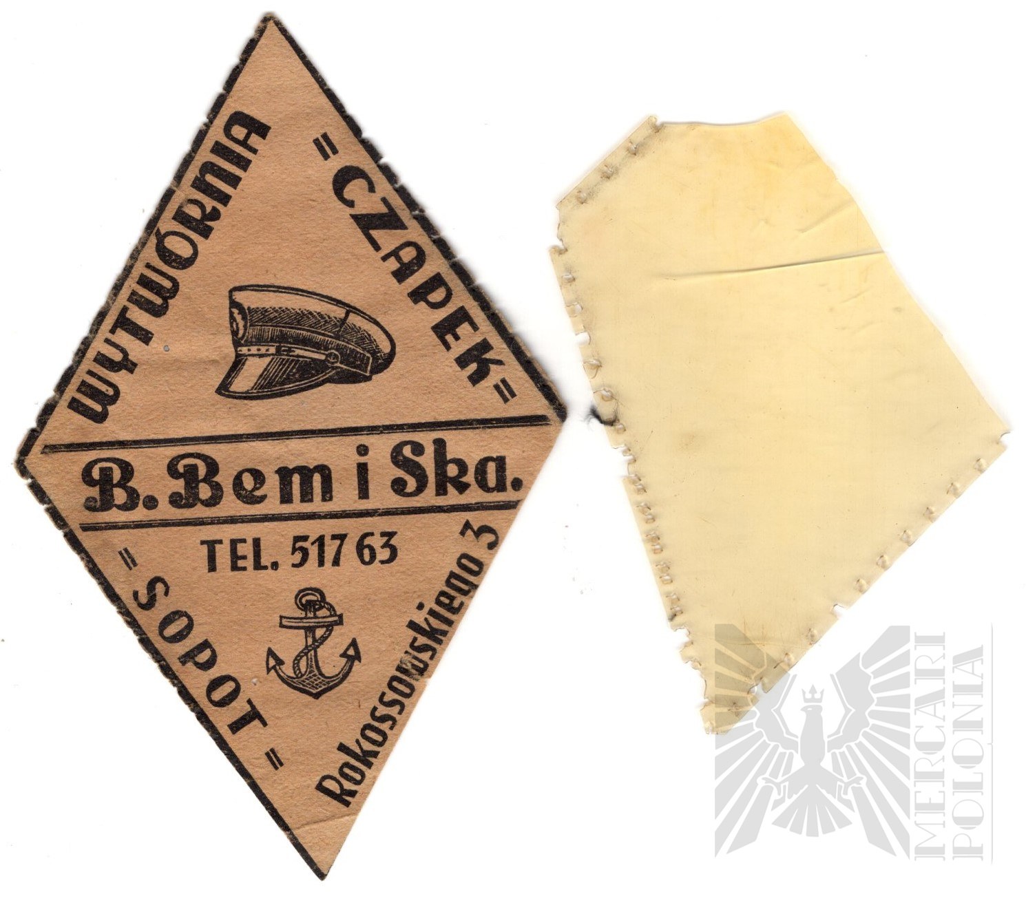 Wszywka papierowa z częścią celuloidu do powojennej czapki bądź rogatywki.