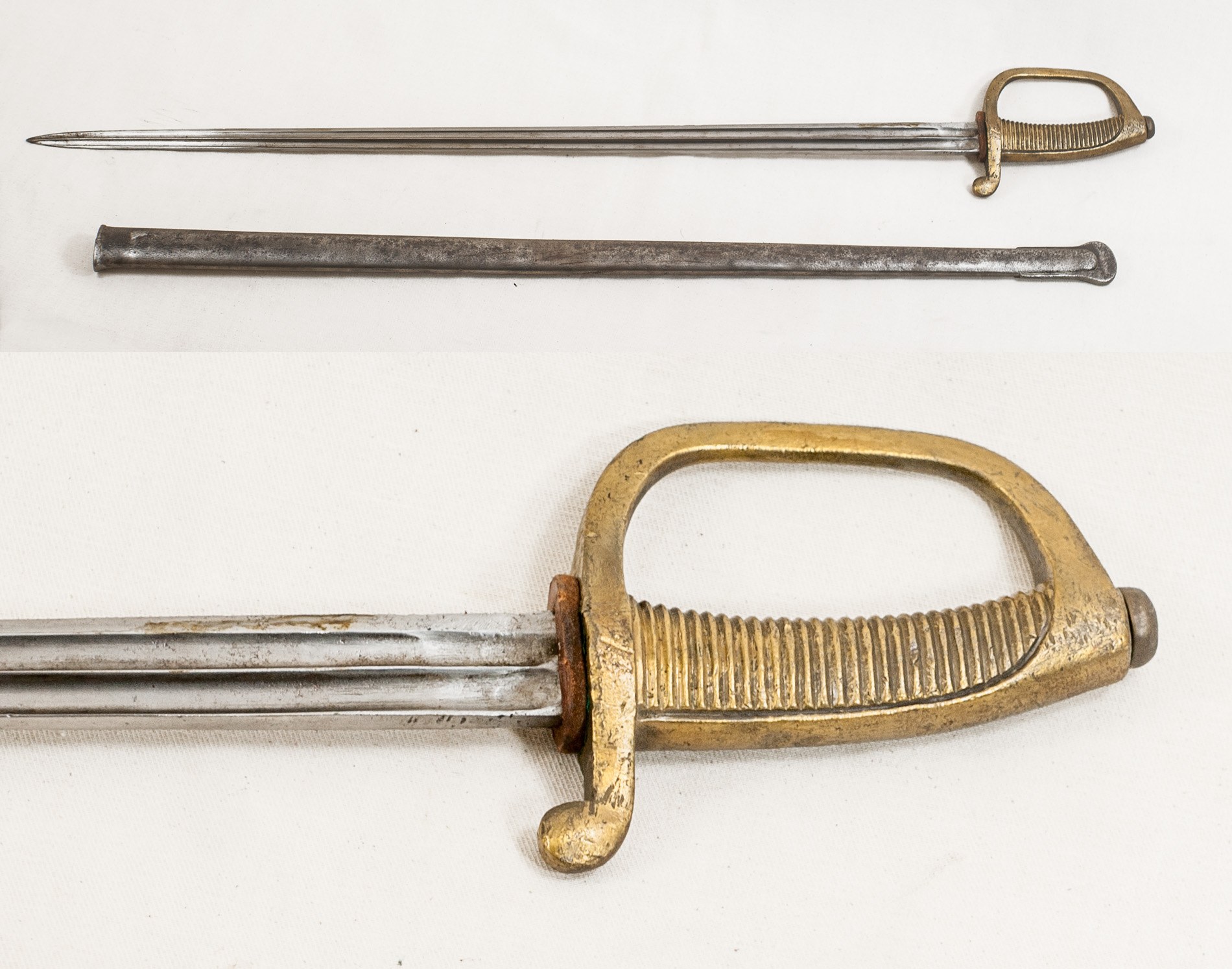 Długość w pochwie: 91,5 cm. Długość bez pochwy: 89,5 cm. Długość głowni: 75,5 cm. Wymiary głowni u nasady:27 x 7 mm. Głownia jednosieczna ze stali polerowanej z dwiema głębokimi bruzdami. Uchwyt mosiężny. Pochwa stalowa bez zaczepu i bez ryfki (goła). Masa pałasza w pochwie: 1,67 kg, bez pochwy: 0,97 kg. Stan zachowania 4/5/4.