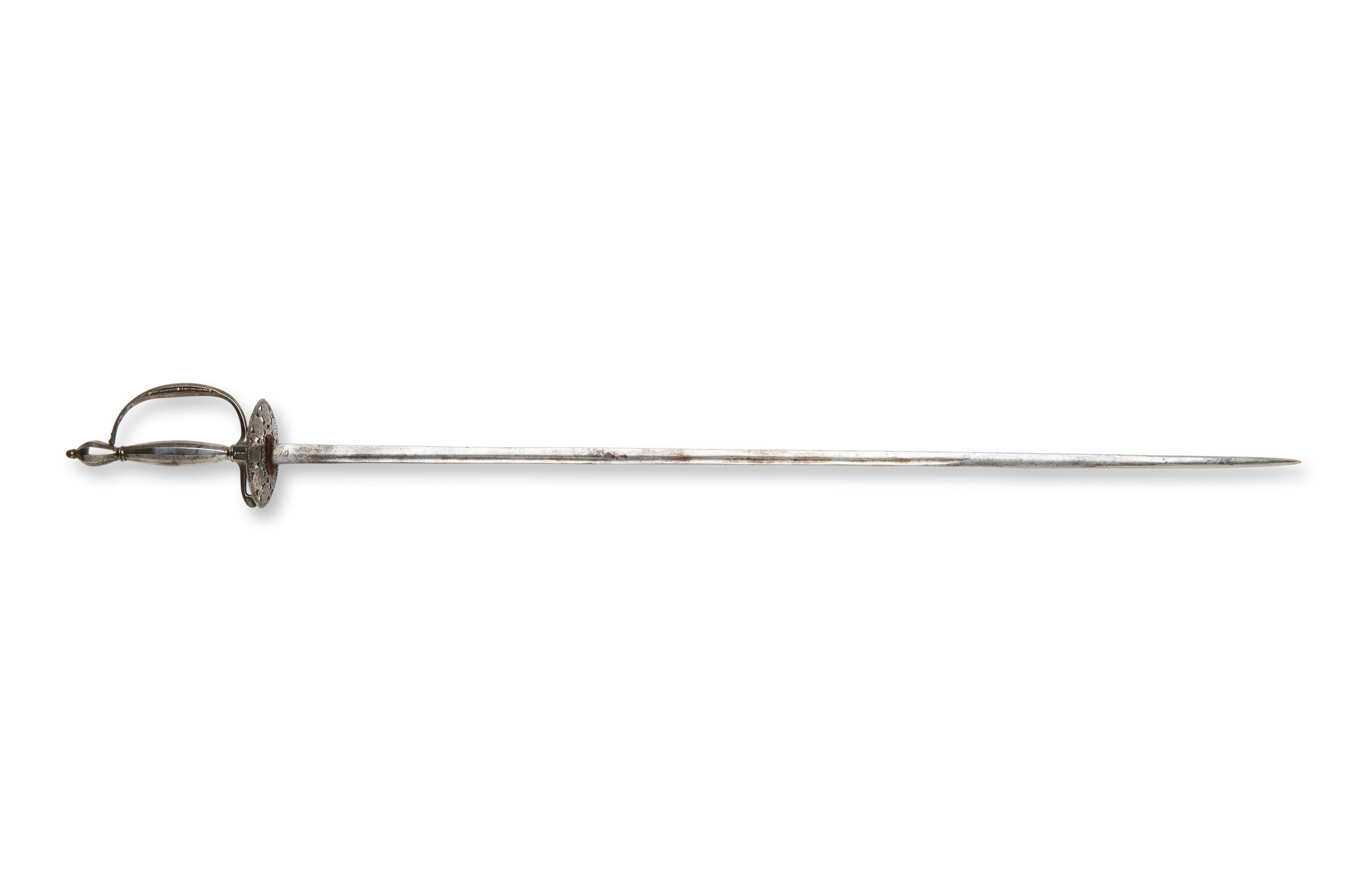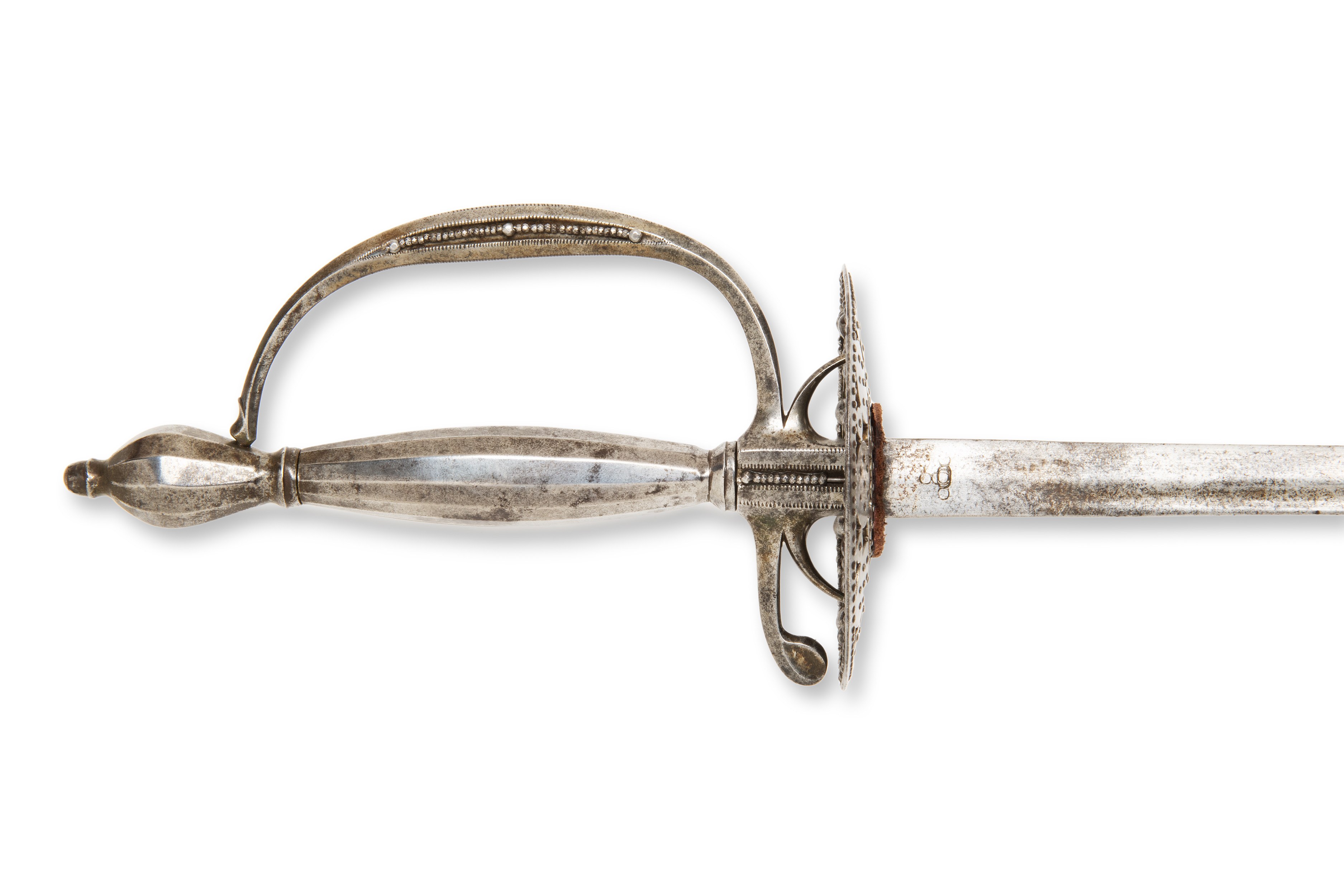 Court cord from around 1820, probably made in France. This cord is characterized by its ornate shield, which suggests that it was intended for court purposes or for high nobility. A cord of this type was often used as a symbol of prestige and power. The cord is unsheathed, which may indicate that the sheath has been lost or damaged. This piece is an example of historic court armor that reflects the culture and style of the time.
