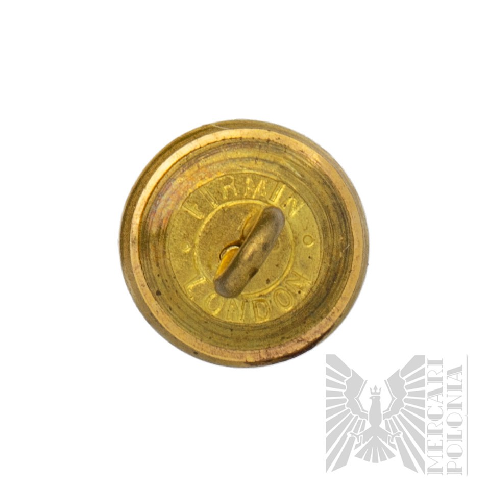 Mały guzik do munduru lotniczego, używany przez Polskie Siły Powietrzne na Zachodzi, guzik o średnicy 14 mm.Guzik sygnowany na rewersie Firmin London.Stan ogólny widoczny na zdjęciach.