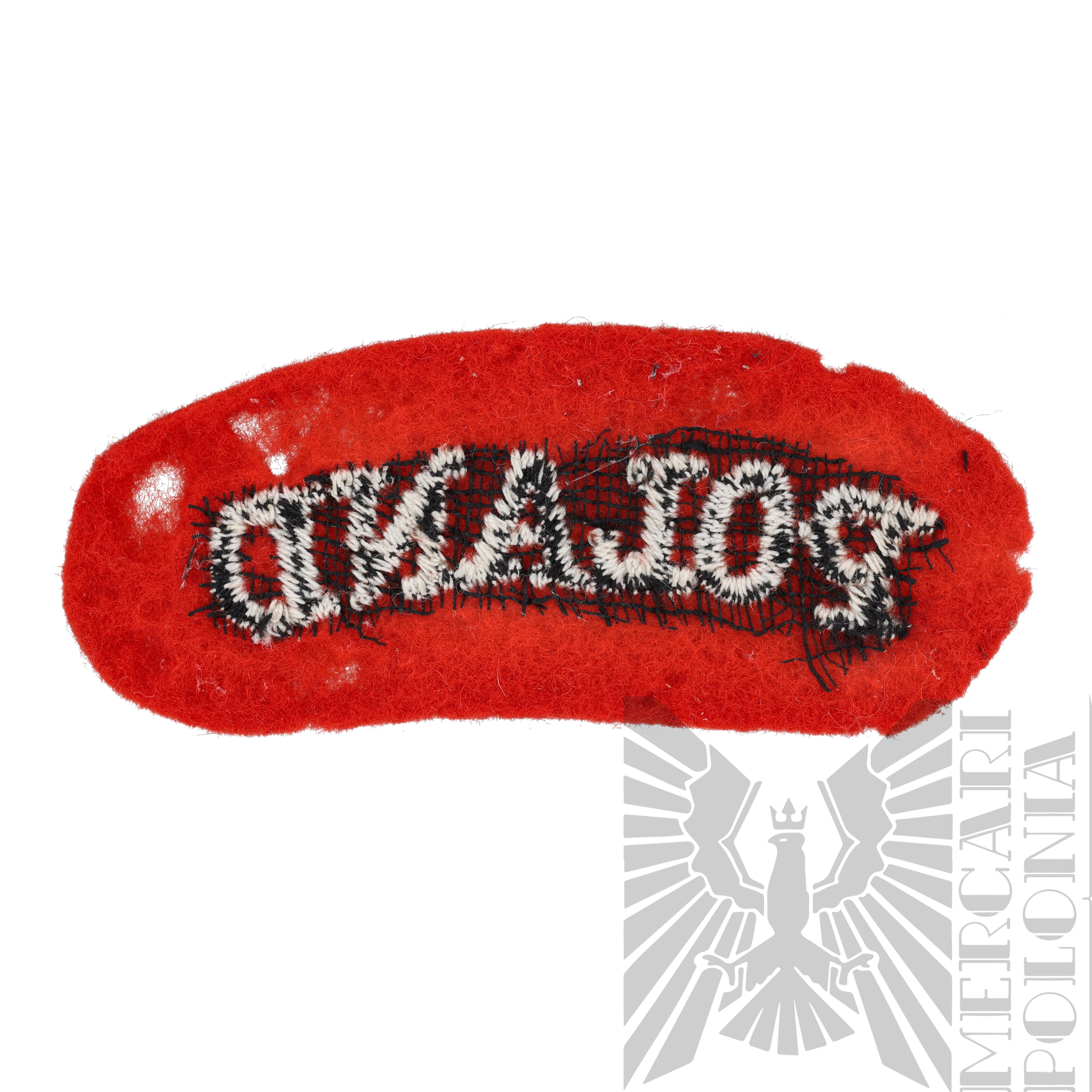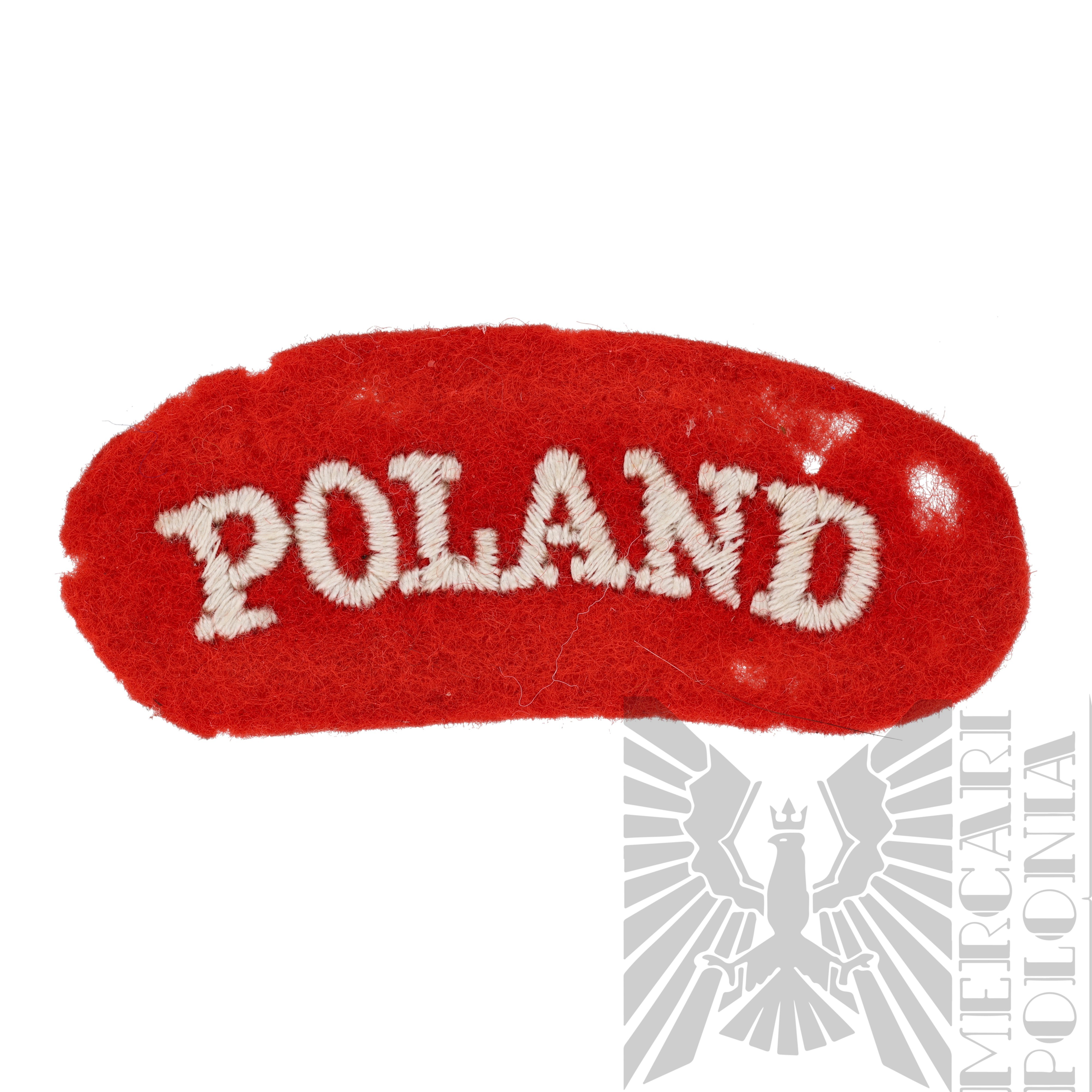 Pojedyncza czerwona naszywka “Poland”. Noszona przez wszystkie oddziały Polskich Sił Zbrojnych na Zachodzie. Odmiana popularnie noszona przez 1 Korpus Polski w Wielkiej Brytanii, 1 Dywizje Pancerną.
