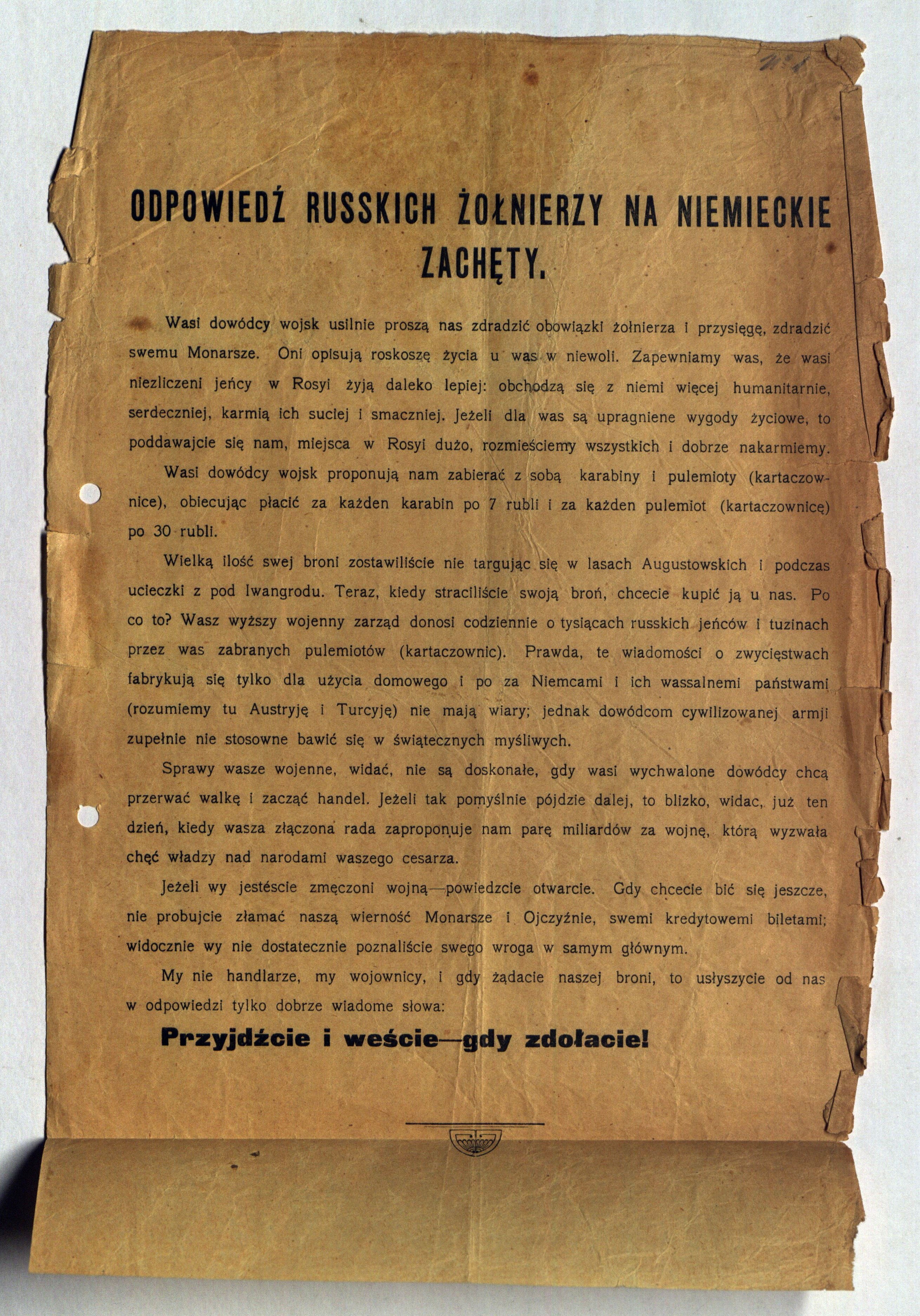 zachęty – 1914, kontrulotka w imieniu żołnierzy-Polaków