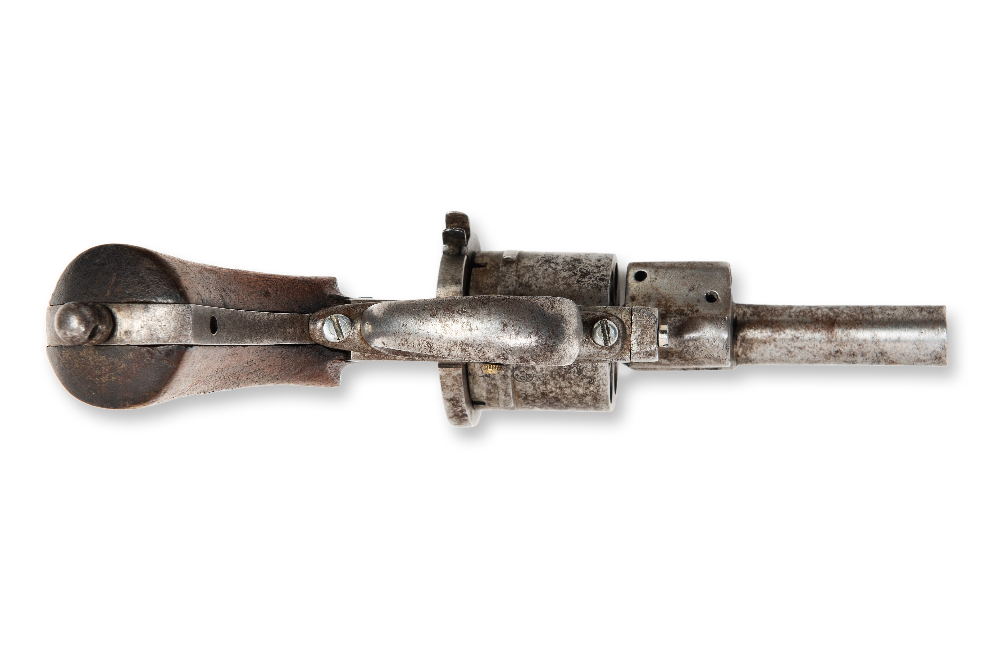 Pre-1890 Lefaucheux revolver, made in Europe. This revolver is in a condition where the ejector is missing, which affects its functionality. The Lefaucheux model was known for its percussion cartridge system, which was innovative for its time. Although the gun shows signs of wear, it may still make an interesting collectible for historians and vintage gun enthusiasts.***IMPORTANT NOTICE***
