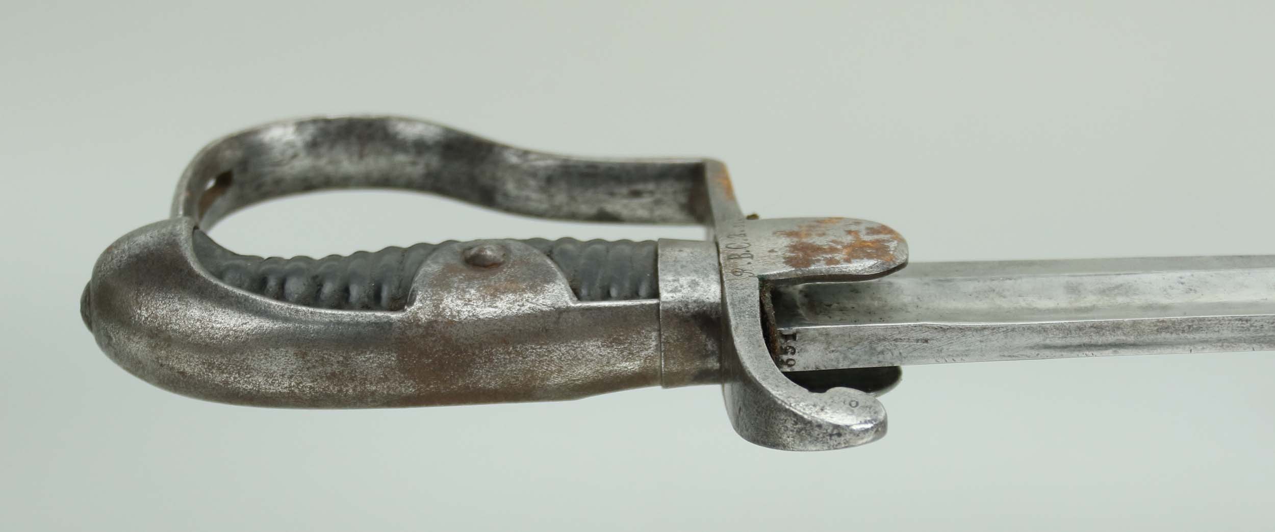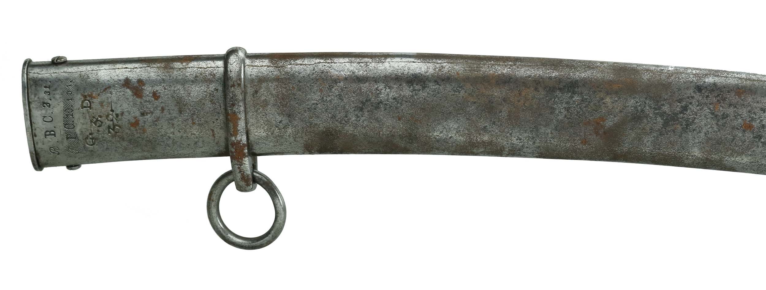 POCHWA: ze stalowej blachy. Szyjka z kołnierzem mocowanym na dwie śruby. Dwa kółka nośne ruchome. Długość pochwy: 86 cm. Sygnatury pochwy: oznaczenie jednostki i numer broni zgodny z szablą. Ponadto skasowane, wcześniejsze sygnatury.