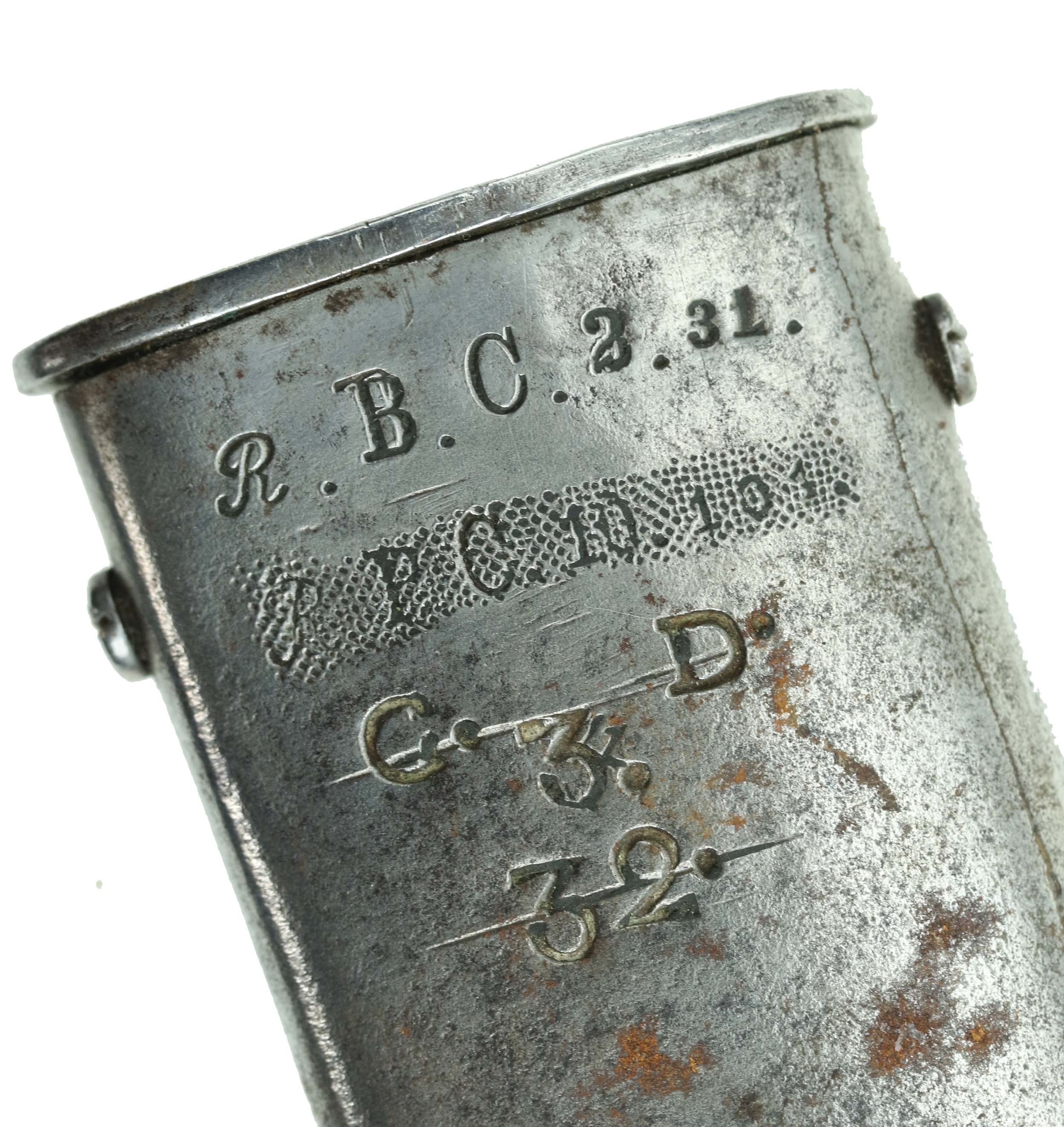 SYGNATURY JELCA: znak kontroli technicznej oraz oznaczenie jednostki i numeru broni: R.B.C.2.31