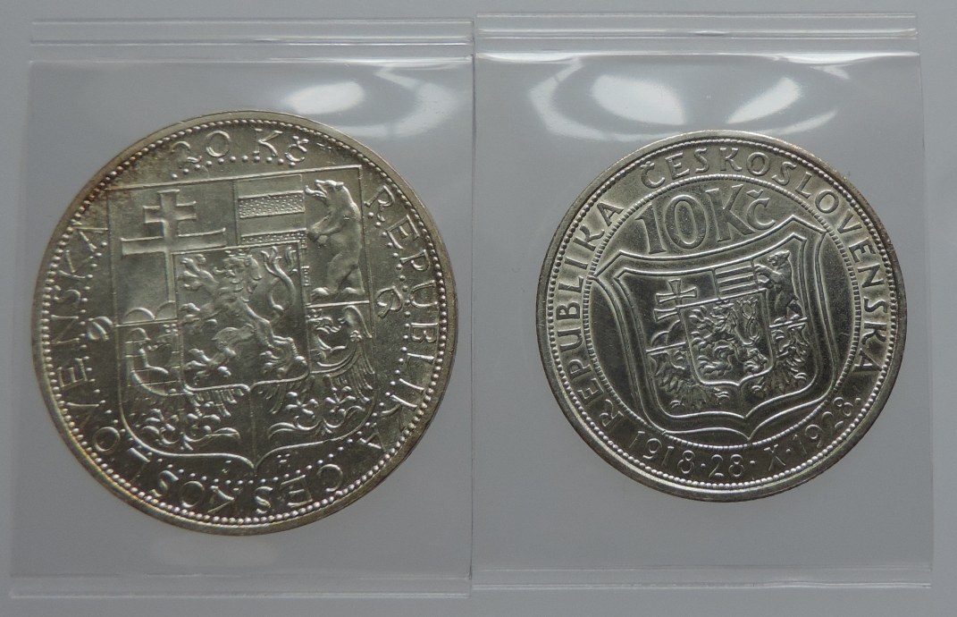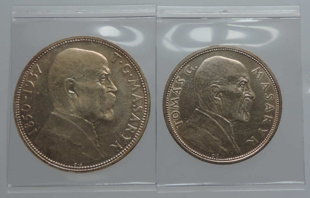 20 Kč 1937 TGM, 10 Kč 1928 TGM