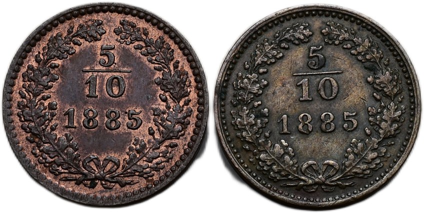 5/10 krejcar 1885 obě var. orlů