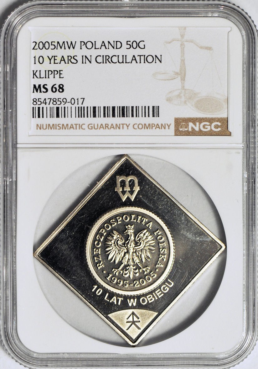 50 groszy 2005, klipa na 10 lecie monety w obiegu
