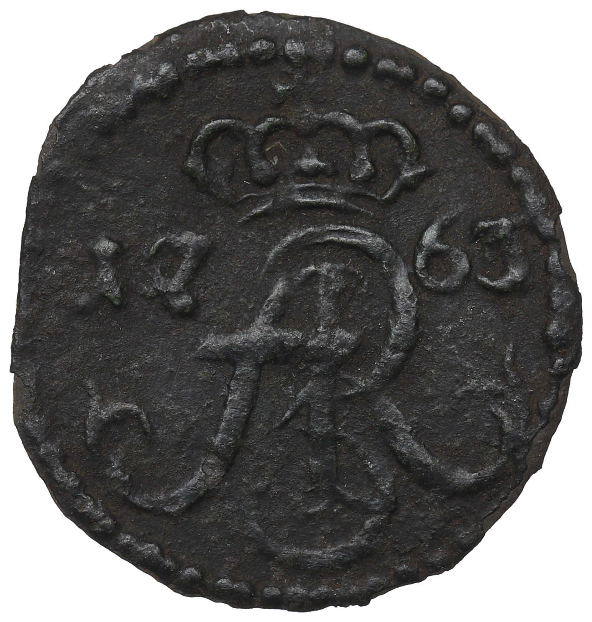 Rewers: ukoronowany monogram królewski, po jego bokach data 17-63;