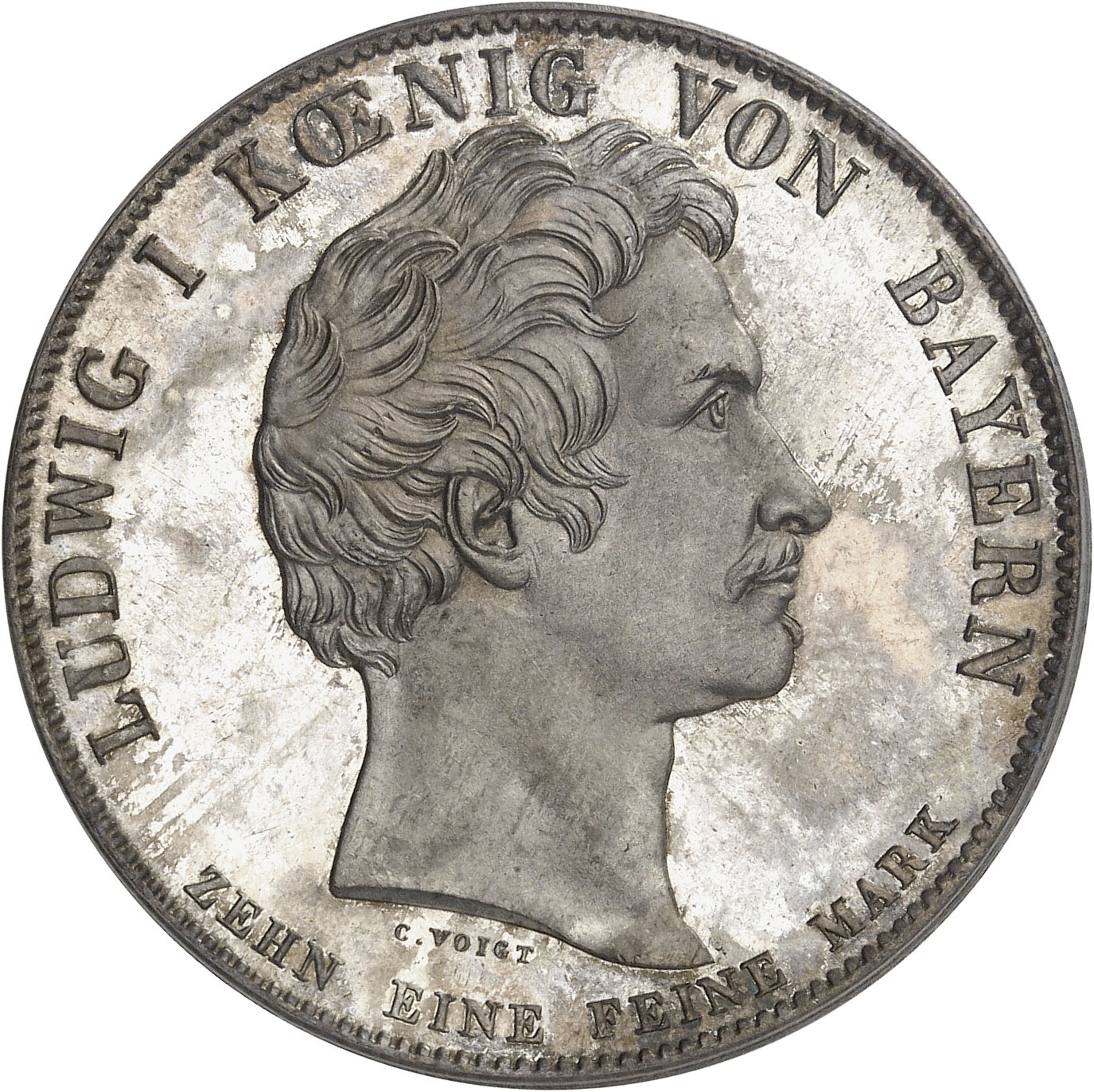 Av. LUDWIG I KŒNIG VON BAYERN. Tête nue à droite, signature C. VOIGT et au-dessous ZEHN EINE FEINE MARK.