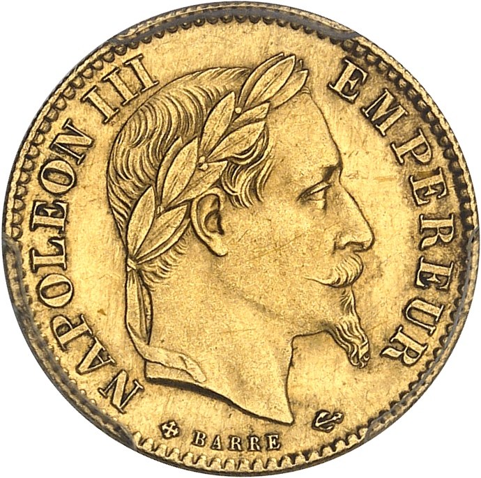 Rv. EMPIRE FRANÇAIS. Dans une couronne formée de deux branches : 10 FRANCS (date) et au-dessous (atelier).