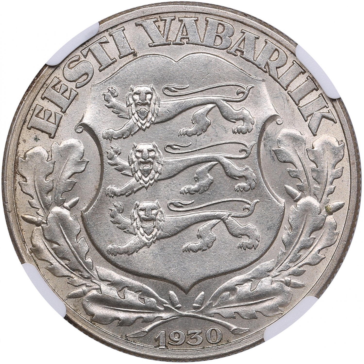 Estonia 2 Krooni 1930 - Toompea Fortress - Tall "1" Variety - NGC UNC DETAILS